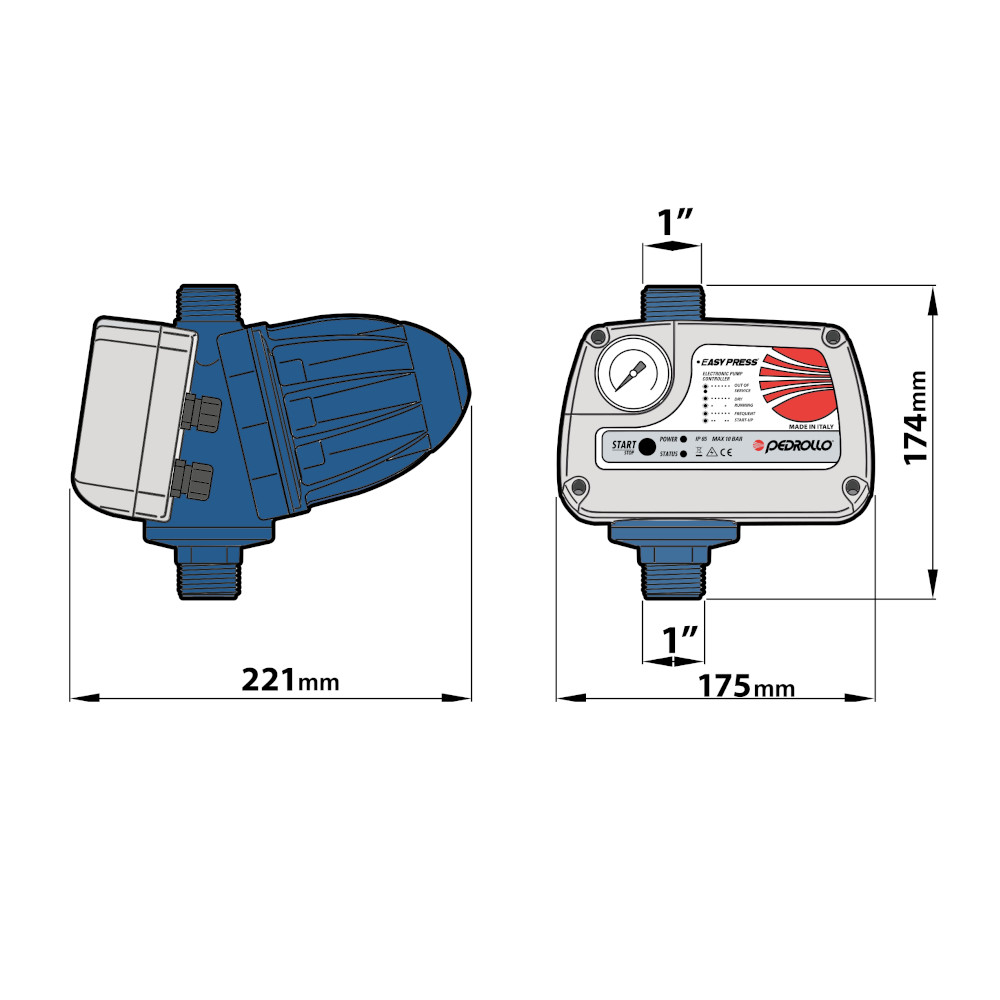 EasyPress serve ad accendere e spegnere l’elettropompa in maniera del tutto automatica. Il Presscontrol è molto compatto e facile da installare, garantisce un ottimo controllo automatico elettronico della vostra elettropompa fino ad 2.0hp, rappresenta la soluzione migliore per controllare la pressione dell’acqua emanata grazie al sistema di Coelbo. Il presscontrol è tarato alla pressione di 1,5 bar e determina la partenza automatica della pompa mantenendo in pressione l’impianto. Attraverso la logica a microprocessore, il presscontrol rileva la portata e la pressione controllando l’avvio e l’arresto dell’elettropompa su cui è installato. Il pressostato elettronico avvia automaticamente l’elettropompa e la mantiene in funzione fino a che l’utenza richiede acqua all’impianto. Questo sistema tutela e garantisce un funzionamento ottimale della vostra elettropompa offrendo protezione contro protegge l’eventuale mancanza d’acqua in aspirazione e quindi evitando marcia a secco ed imminente rottura della vostra pompa. Un vantaggio eccezionale è naturalmente la riduzione di spazi occupati paragonando EasyPress ad un classico sistema autoclave, eliminando inoltre tutte le classiche e periodiche manutenzioni a vaso espansione.