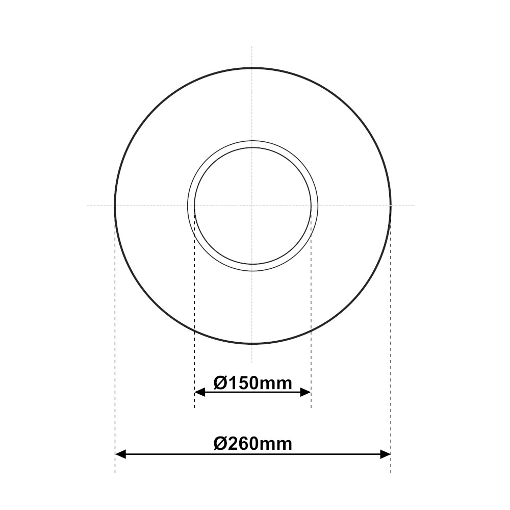 Rosone nero opaco Ø 150mm per stufa a legna, ideale per nascondere le imperfezioni causate dalla foratura delle pareti. Il rosone in acciaio pesante viene generalmente applicato nel punto di passaggio della tubatura, creando continuità con il resto dell’impianto di scarico fumi. In aggiunta è in grado di occultare qualsiasi imperfezione causata dalla creazione del foro nella parete. Il rosone circolare è realizzato in acciaio ferroso ed è di colore nero opaco, un colore difatti in linea con la maggior parte dei raccordi e delle tubature per stufa a legna. Il coprimuro circolare ha un diametro esterno di 260mm ed un diametro interno di 150mm, adatto quindi al passaggio di tubature dello stesso diametro. Il rosone di finitura può essere utilizzato esclusivamente in ambienti interni. Disponibile in varie misure.