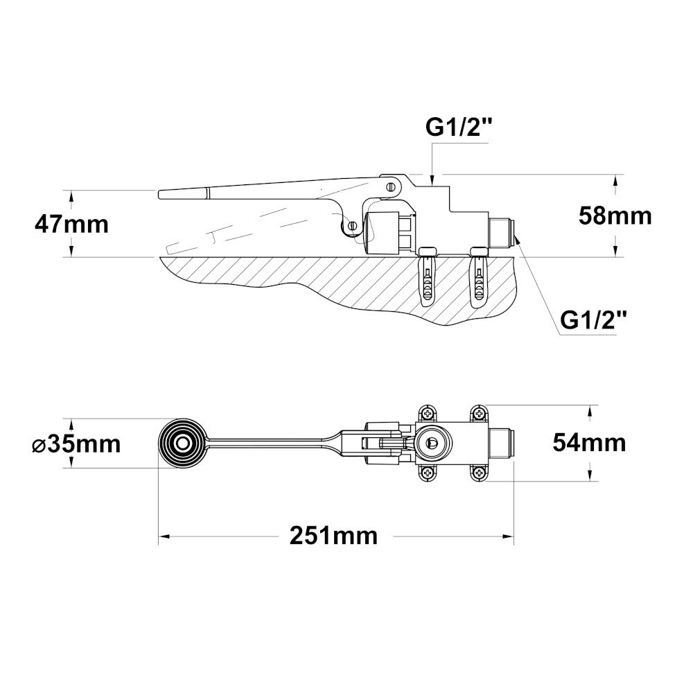 L’installazione è versatile, con possibilità di fissaggio sia a pavimento sia a parete, adattandosi facilmente a diverse configurazioni impiantistiche. La connessione è dotata di gambo filettato maschio G 1/2” e il flusso può essere regolato secondo le esigenze operative.