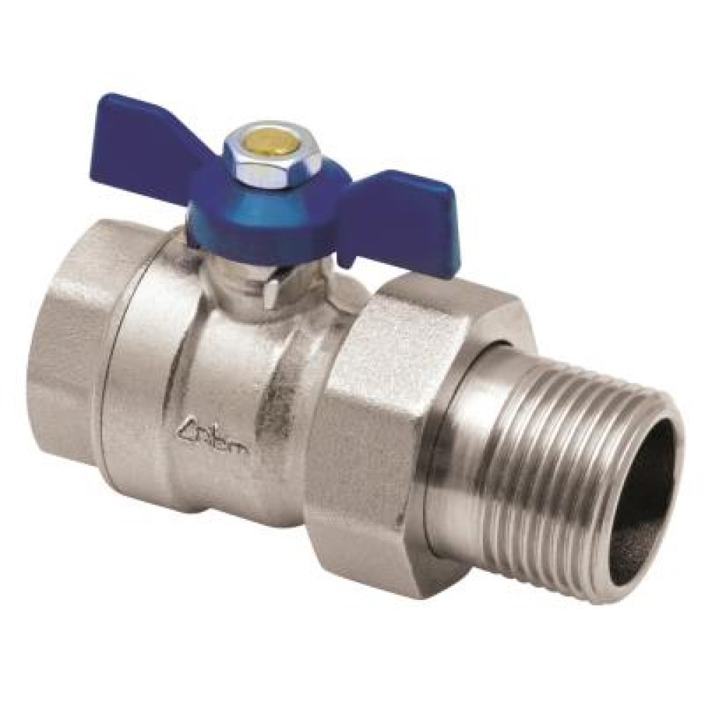 Valvola a sfera a passaggio standard con bocchettone M blu 1″