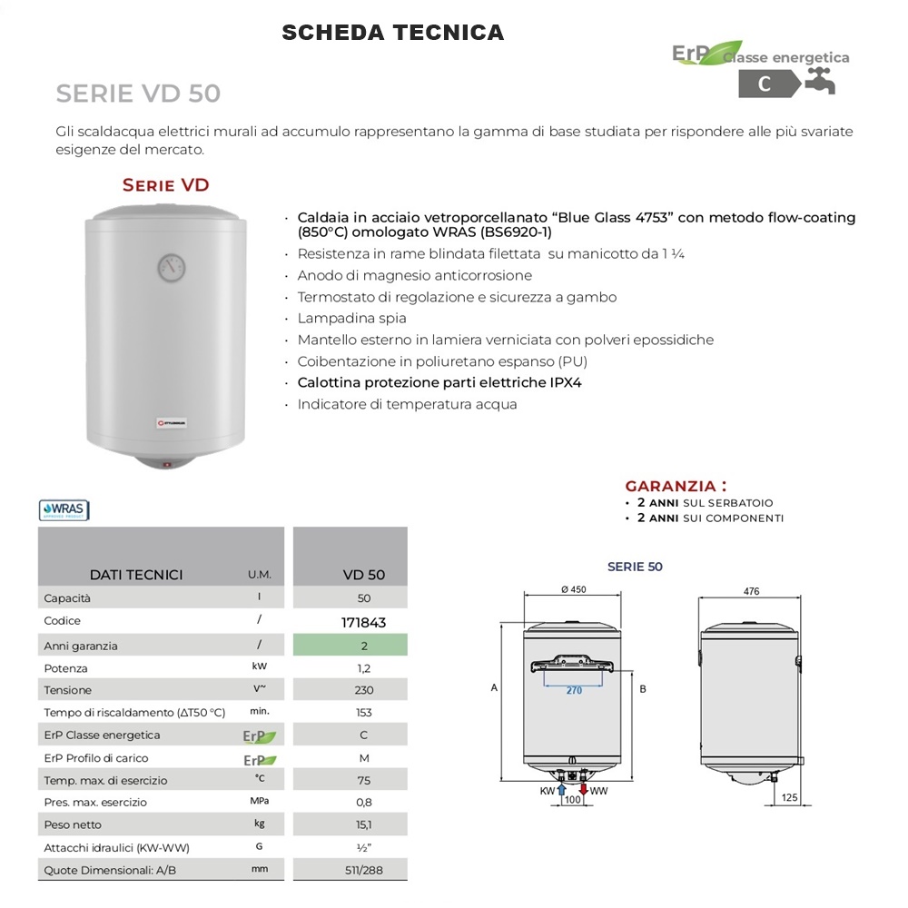 Il boiler Styleboiler da 50 litri beneficia di una garanzia di 2 anni, assicurando la massima serenità nell’investimento.