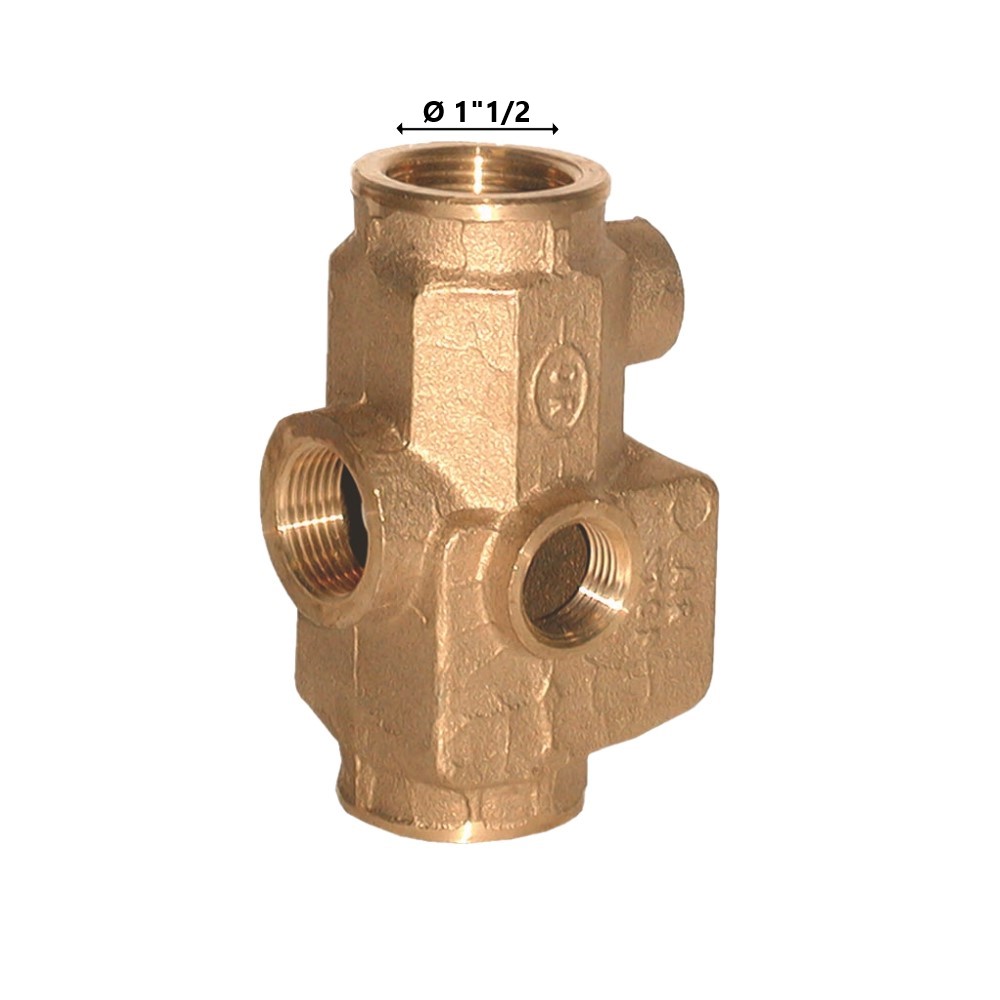 Separatore d’aria corpo in ottone con attacchi per valvola sfogo aria, valvola di sicurezza e termomanometro. Per evitare il verificarsi di malfunzionamenti negli impianti di riscaldamento e di raffreddamento causati dalla presenza di aria nei sistemi, è necessario dotare gli impianti di elementi adatti a separare ed eliminare l’aria presente nell’acqua. Il separatore d’aria, serve a ridurre la velocità di circolazione dell’acqua e quindi a facilitare la separazione delle bolle d’aria. Ø 1″1/2.