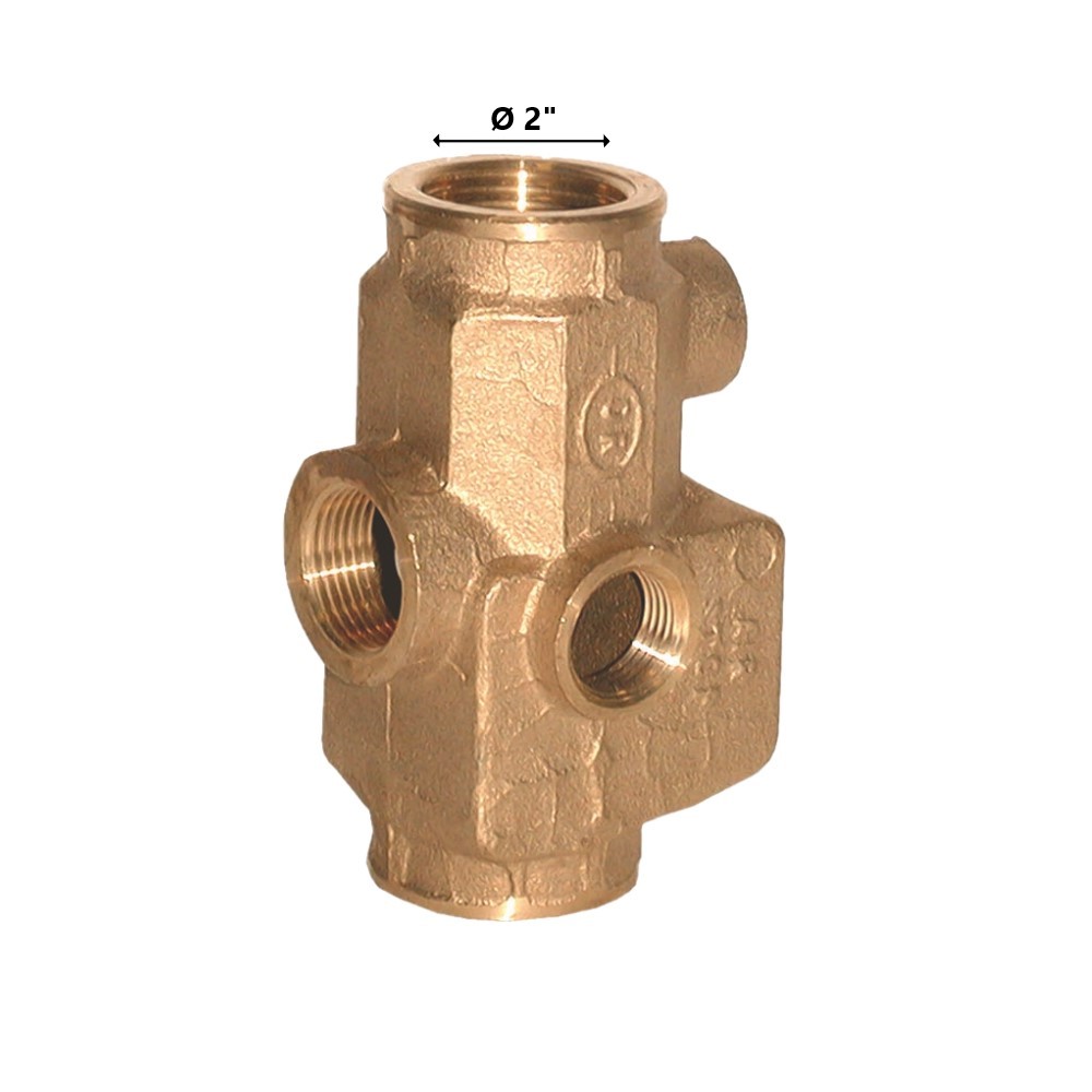 Separatore d’aria corpo in ottone con attacchi per valvola sfogo aria, valvola di sicurezza e termomanometro. Per evitare il verificarsi di malfunzionamenti negli impianti di riscaldamento e di raffreddamento causati dalla presenza di aria nei sistemi, è necessario dotare gli impianti di elementi adatti a separare ed eliminare l’aria presente nell’acqua. Il separatore d’aria, serve a ridurre la velocità di circolazione dell’acqua e quindi a facilitare la separazione delle bolle d’aria. Ø 2″.