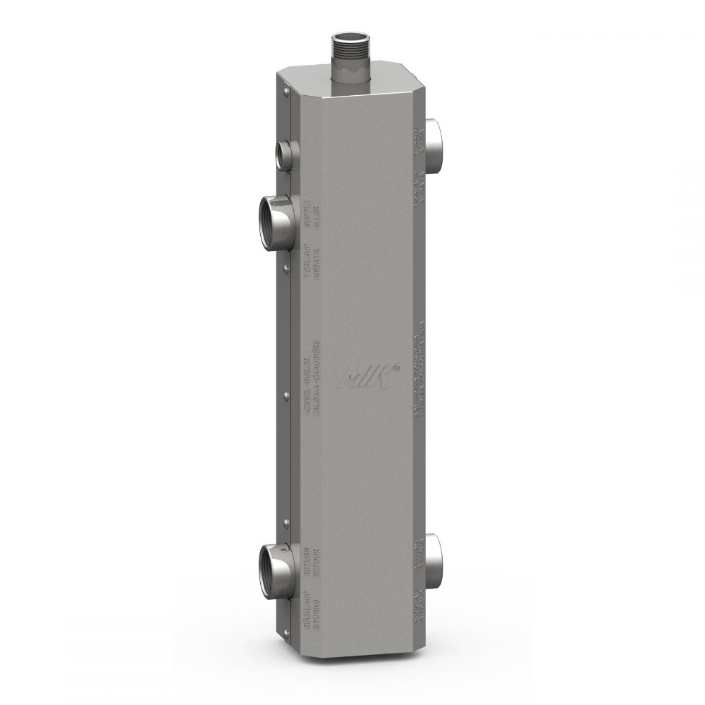 Il separatore idraulico è utile quando le portate tra due circuiti sono differenti. Utilizzato per compensare i circuiti tra generatore e impianto ed evita un possibile blocco della caldaia. Provvisto di due attacchi da 1/2 per lo scarico e la rilevazione della temperatura. Il disgiuntore è predisposto per il montaggio verticale infatti in alto ha un attacco per un gruppo di sfiato e sicurezza. Isolato in EPS con rivestimento in metallo per garantirne una lunga durata del prodotto. La sua portata ideale è 4m3/h per potenze fino a 100kw, questo lo rende utilizzabile in un vastissimo campo d’impiego.