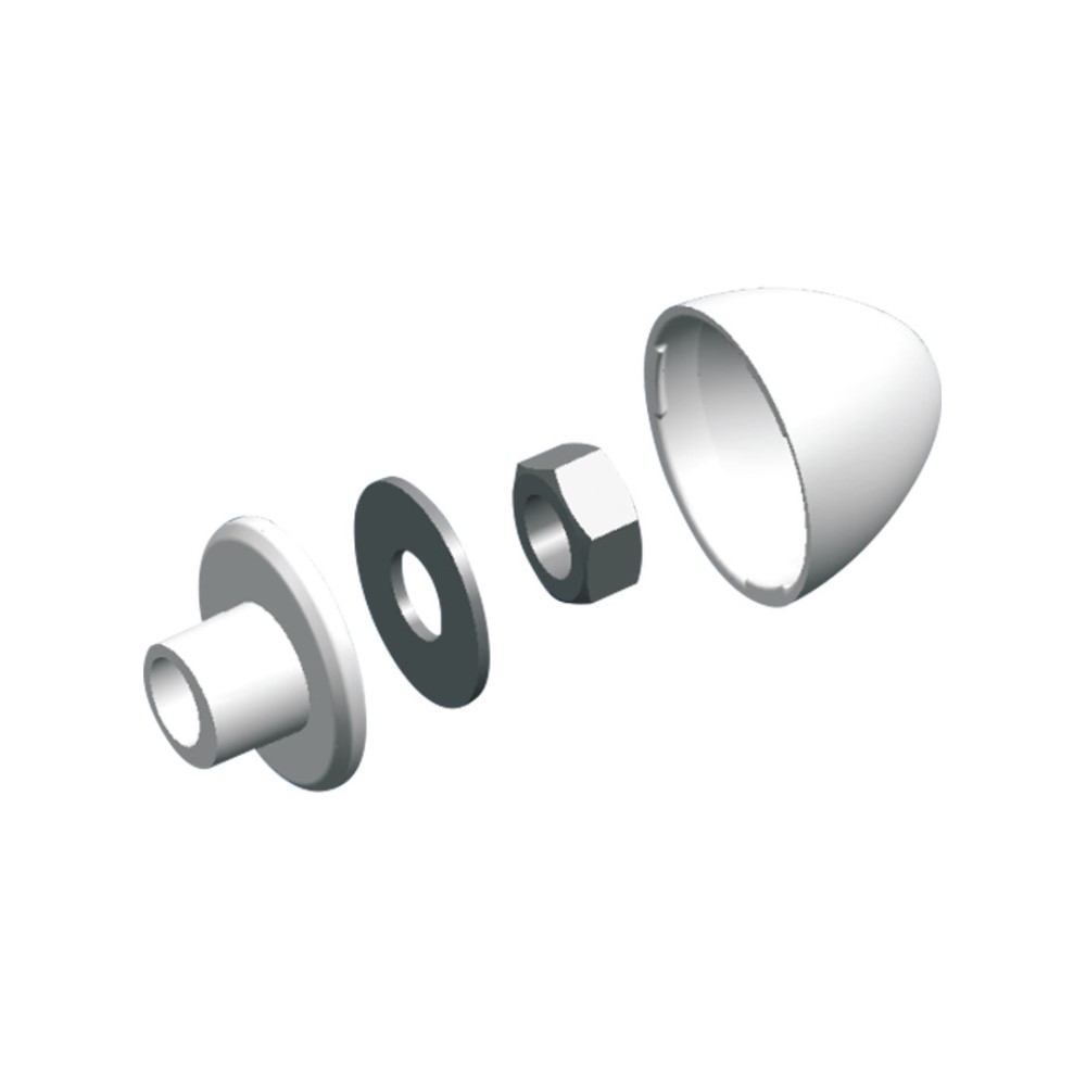 Fissaggi per sanitari sospesi BUAK Fischer. La confezione contiene 2 boccole eccentriche, 2 rosette larghe, 2 dadi in acciaio M12, 2 calotte bianche.