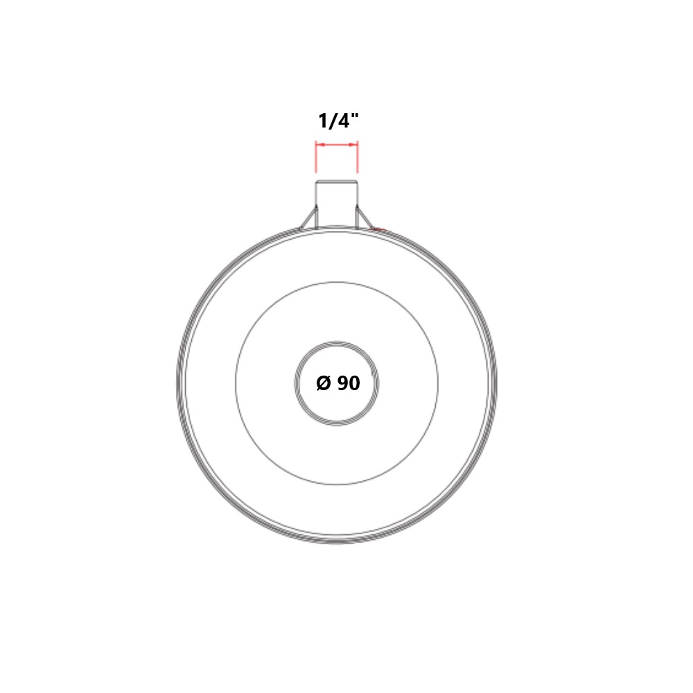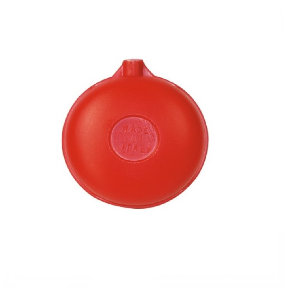 Sfera piatta per galleggianti in MOPLEN per acqua calda con nottolino in ottone filettato da 1/4 W per asta tonda. Ø 90 mm.
