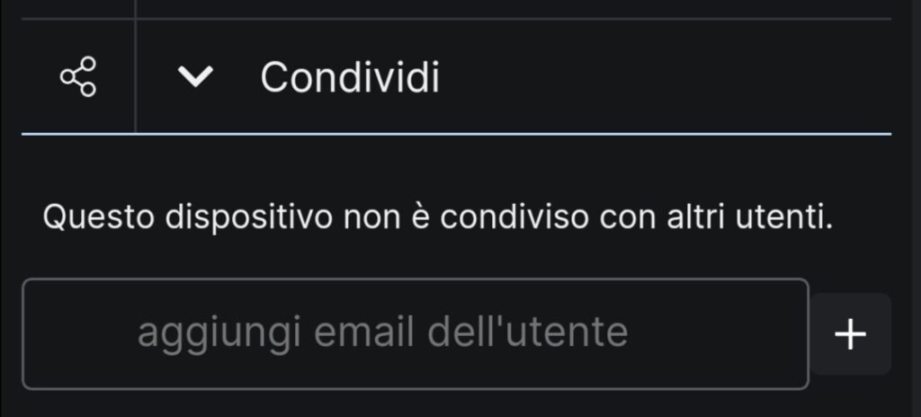 Se invece vogliamo condividere solamente un dispositivo con un diverso account, sarà sufficiente indicare l’email del relativo account nel dispositivo che vogliamo condividere.