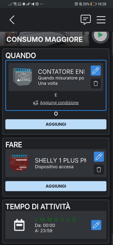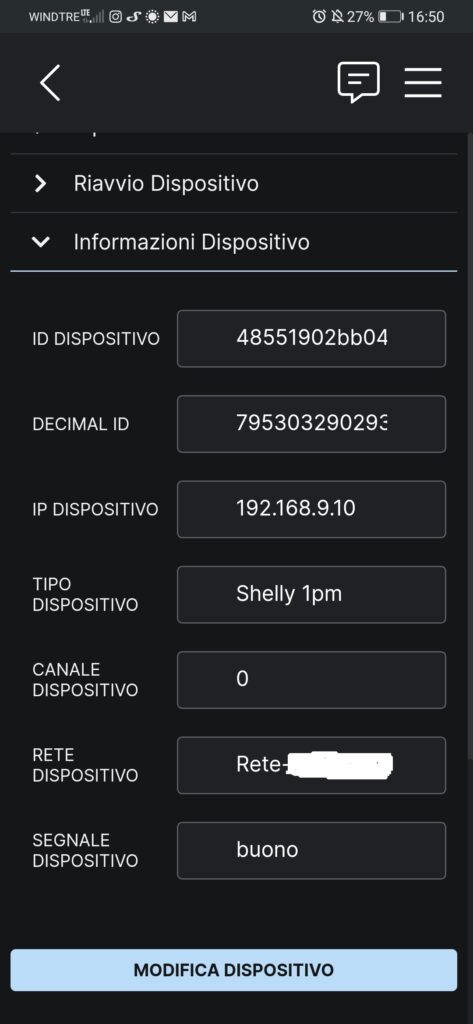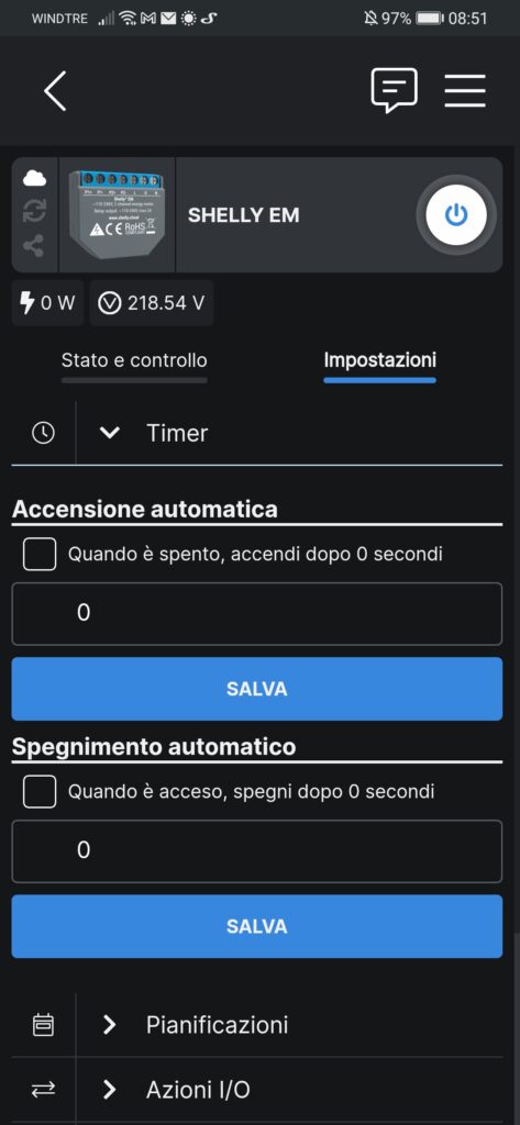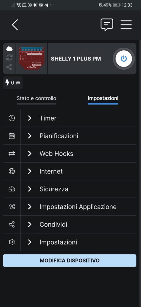 Per ogni dispositivo di famiglia Shelly abbiamo la possibilità di modificarne le impostazioni per la creazione delle nostre automazioni.