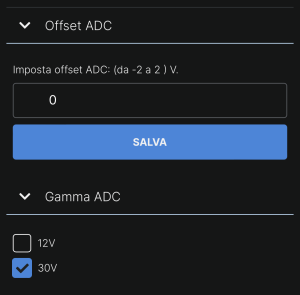 La seconda permette di decidere il range di funzionamento dell’ADC che è composta da due range di tensione che possono essere di 12V o 30V.