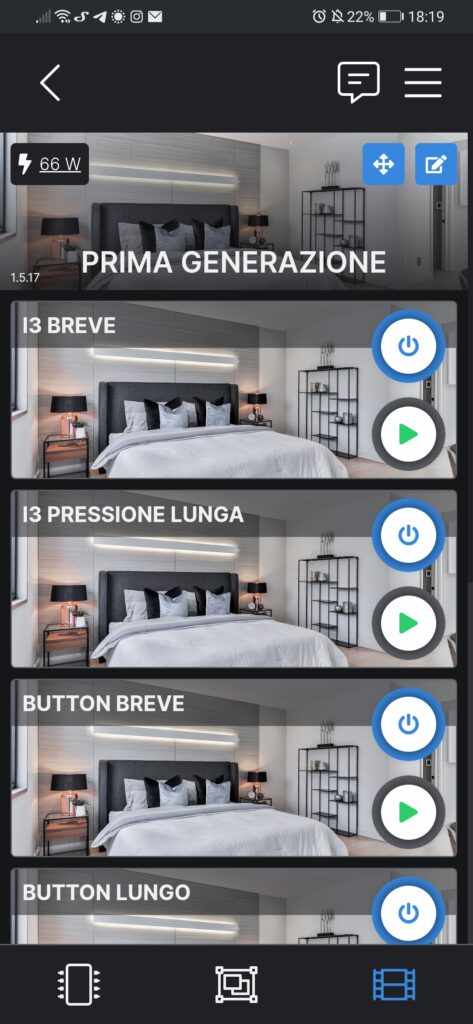 Potremo inoltre testare le scene con la possibilità di accenderle e spegnerle a nostro piacimento ,tramite l’apposito tasto d’accensione presente nella schermata “Scene”.