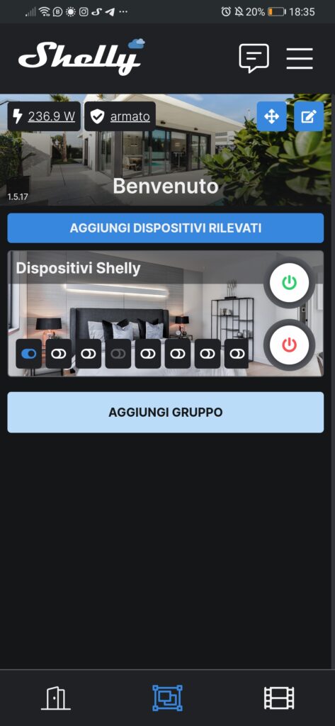 6. Apri l’applicazione Shelly Cloud e in 30 secondi vedrai la stanza “Dispositivi rilevati“. Inseriscilo e vedrai la tua Shelly con il suo IP.