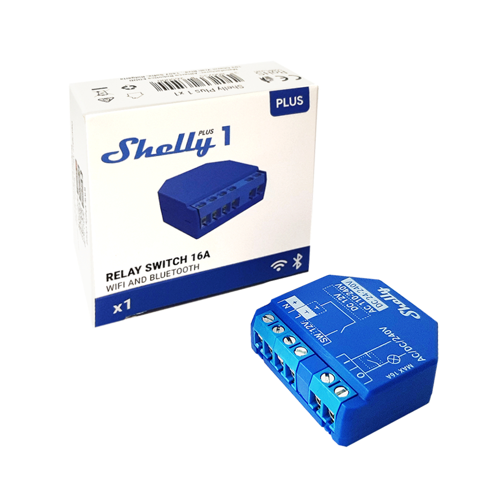 Lo Shelly Plus 1 è un dispositivo relè WiFi che ti permette di controllare elettrodomestici e apparecchiature per ufficio(luci, linee elettriche, sistemi di sicurezza, ecc.) da qualsiasi luogo. La novità dello Shelly 1 Plus è l’implementazione del Bluetooth che ci permette un accoppiamento facile ed intuitivo. Eseguibile tramite l’App Shelly, sia attraverso il Web Server incorporato.