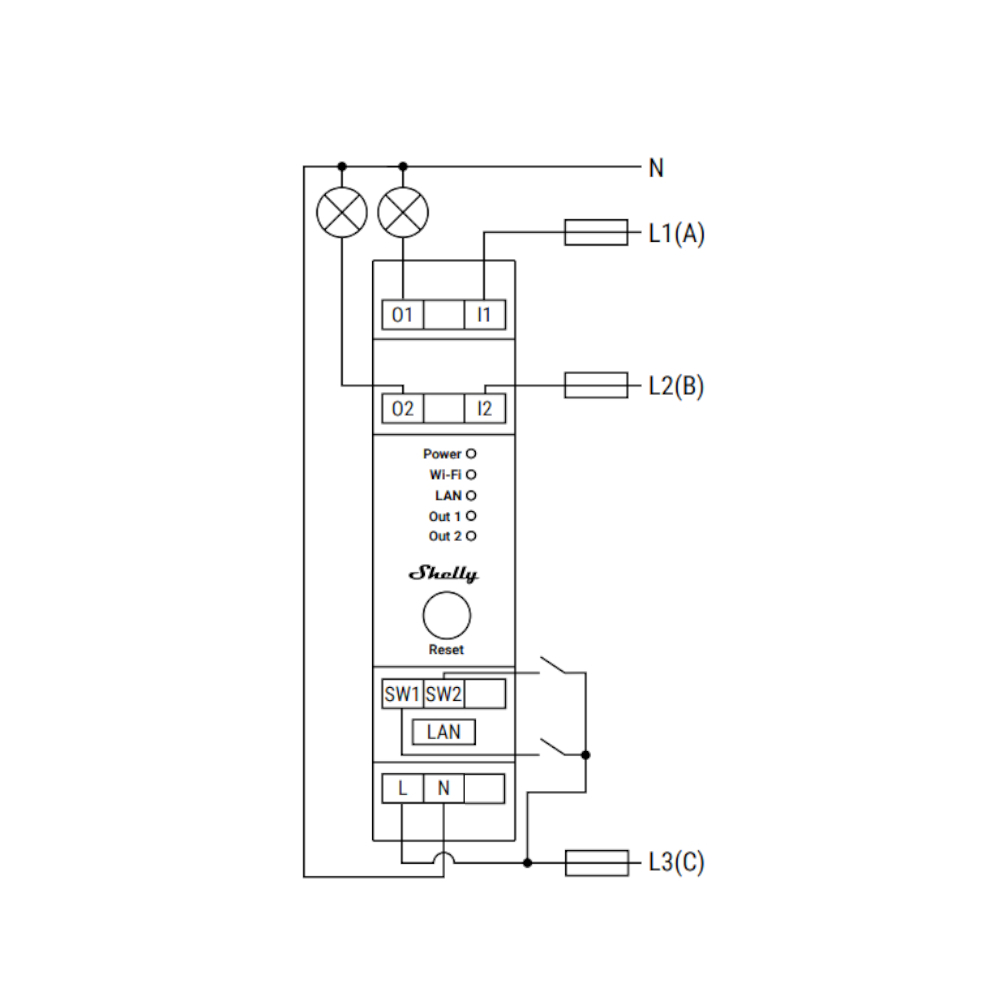 Lo Shelly Pro 2 è un interruttore relè su guida DIN a 2 canali con connessione Wi-Fi, LAN e Bluetooth. In sostanza, è adatto per domotica e domotica con telecomando e montabile su guida DIN all’interno di una scatola interruttori per controllare e automatizzare luci, prese e interruttori. Dispone di funzionalità di sicurezza avanzate e compatibili con le piattaforme domotiche più utilizzate. Lo Shelly Pro 2 è dotato di Connessione LAN, Wi-Fi e Bluetooth a 2 uscite, con corrente a 16A con 2 contatti puliti.
