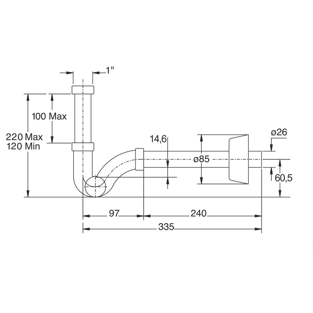 Sifone ad esse cromato Ø 1″ x 26mm Bonomini