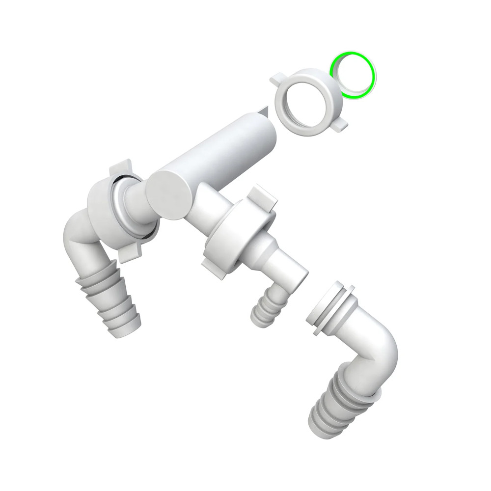 La sua configurazione prevede un attacco principale da un 1″ che permette di collegarlo in modo sicuro al sifone esistente. Dal corpo centrale partono tre attacchi universali: due sono specificamente pensati per lavatrice e lavastoviglie, mentre il terzo è dedicato all’asciugatrice, permettendo così di gestire fino a tre elettrodomestici con un unico componente.