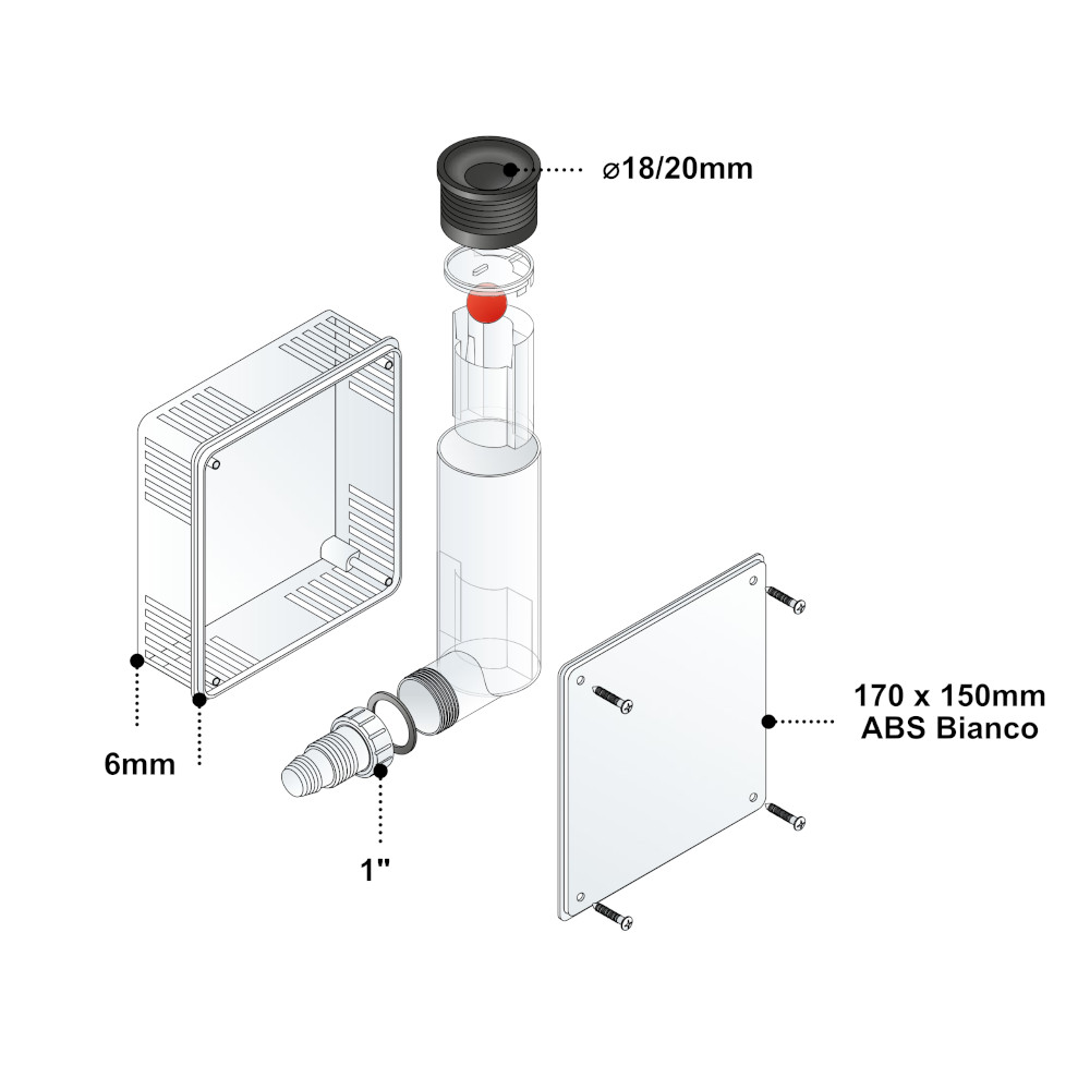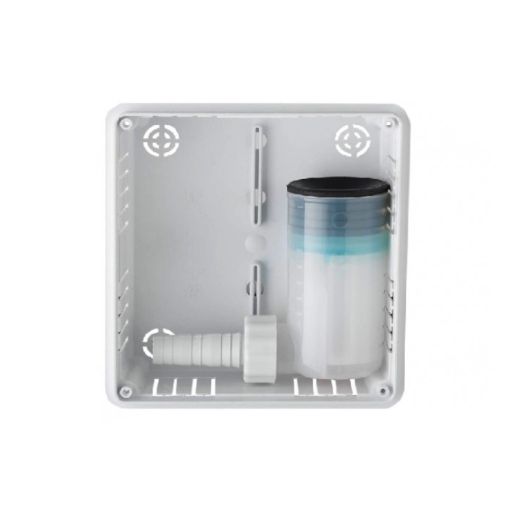 Il sistema è fornito di una scatola che lo protegge e può essere nascosta all’interno di pareti o controsoffitti. Assicura una soluzione estetica che si integra perfettamente con l’ambiente circostante. Inoltre, è dotato di una sfera antiodore che evita la risalita di odori sgradevoli dal sistema di scarico e mantiene l’aria fresca e pulita.