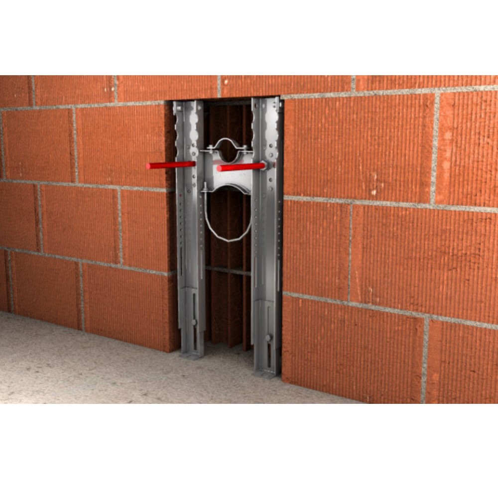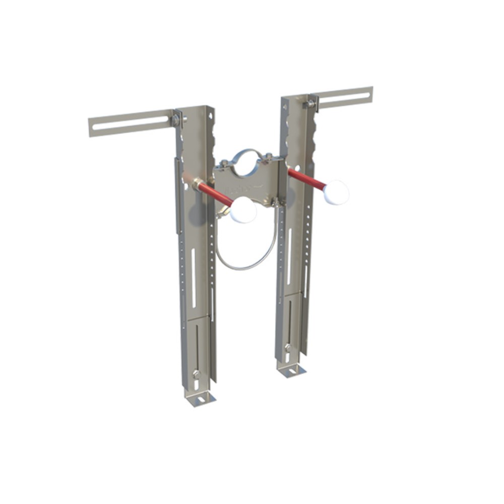 Staffa preassemblata per il fissaggio di WC e bidet sospesi su pareti portanti. La confezione è completa dei supporti e dei collari per fissare i componenti dell’adduzione e dello scarico. La scatola è completa di boccole eccentriche BUAK, barre filettate M12 e protezioni. Interasse delle barre filettate M12 a 180 mm o 230 mm. Barre filettate lunghe 180 mm. Telaio testato a 400 kg secondo UNI EN 997 (WC) e UNI EN14528 (bidet). Premium può essere usato con qualsiasi tipo di cassetta. Piedini regolabili da 0 a 13 cm e utilizzabili anche in orizzontale per ampliare la base d’appoggio. Zanche utilizzabili lateralmente o in profondità per applicazioni davanti alla parete. Longheroni sagomati per un migliore aggrappo della malta. MATERIALI DI SUPPORTO: mattone pieno in laterizio, mattone semipieno (perforato verticalmente) in laterizio. Altezza 520 mm – Larghezza 270 mm – Interasse 180/230 mm.