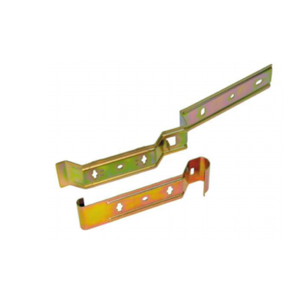 La staffa di sostegno (o gronda ) per falda con chiavette è usata per sostenere i tubi sospesi delle grondaie per la raccolta delle acque pluviali come “Luna” o “Vega” ed è di colore passivato oro.