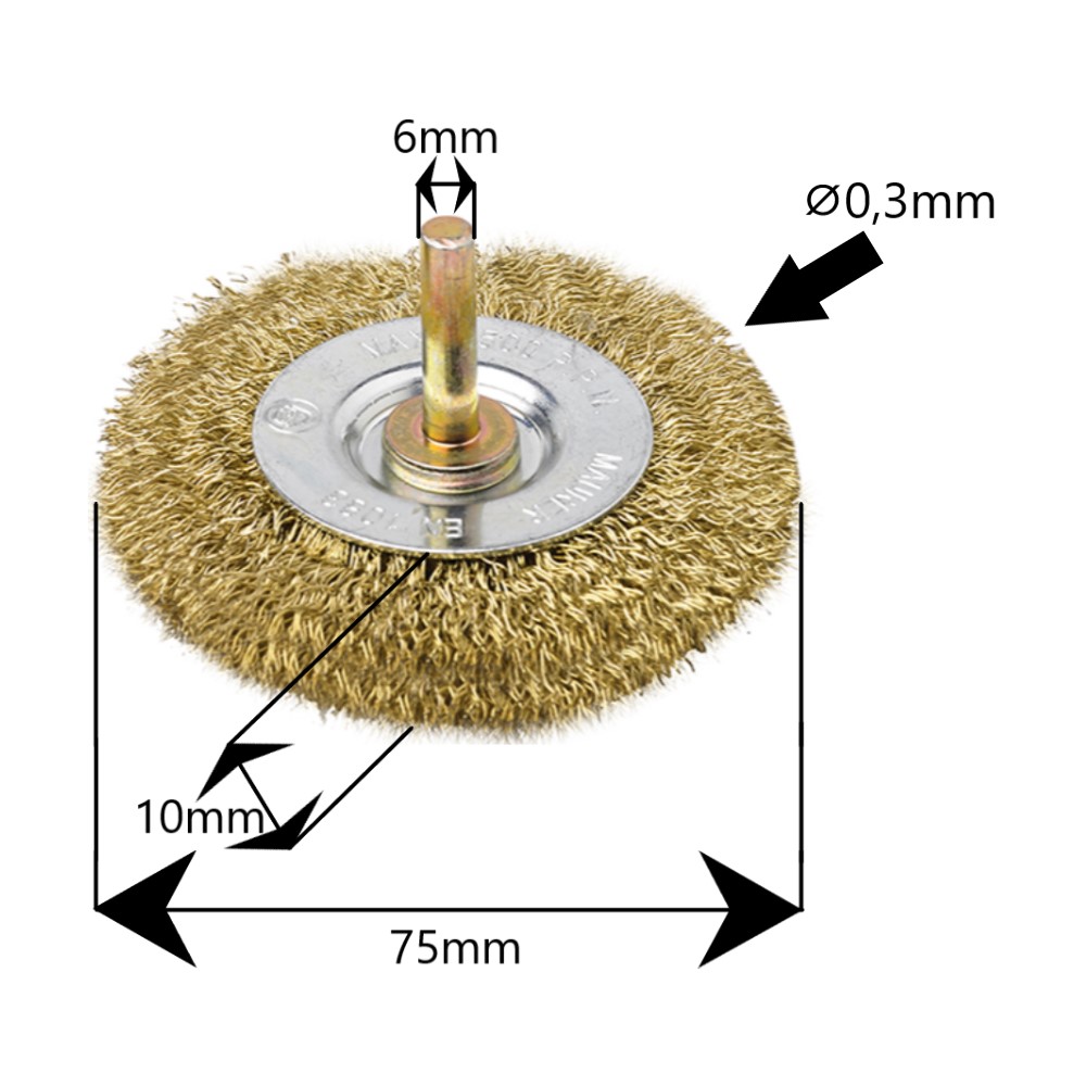 Spazzola A disco con gambo con fili ondulati per avvitatore 75x10mm Maurer
