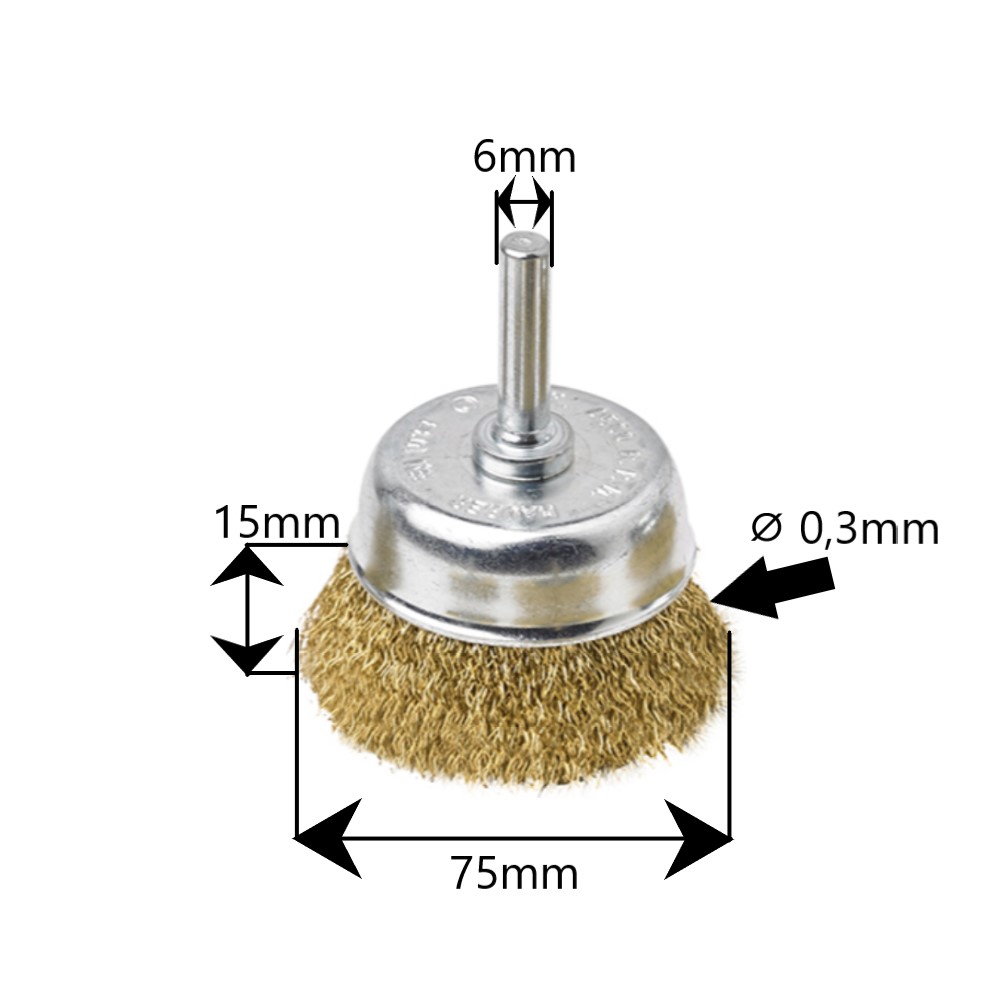 Spazzola a tazza con gambo con fili ondulati per avvitatore 75x15mm Maurer