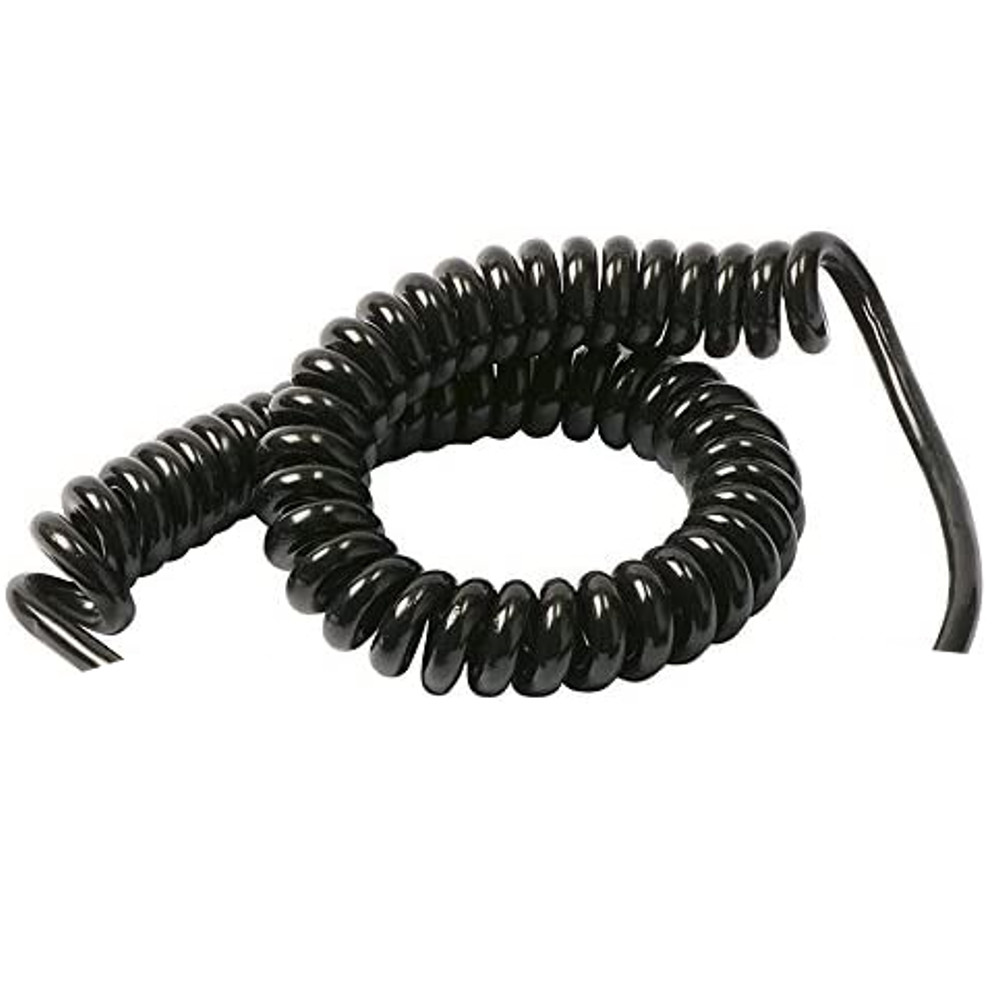 Cavo elettrico spiralato estensibile 3X0,75 nero. Lunghezza cavo linerare 5m. Utilizzato per il collegamento di lampadari o per il cablaggio di una prolunga.