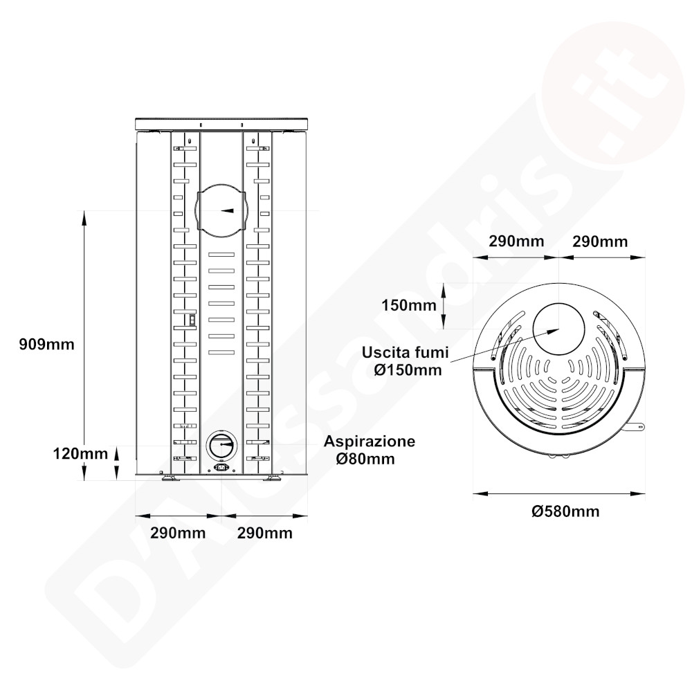 La stufa Moretti è dotata di un’opzione di uscita fumi sia posteriore che superiore, offrendo la libertà di installare la canna fumaria o a scomparsa o a vista. Le griglie frontali sono realizzate in acciaio inox, un materiale resistente alla corrosione e che assicura una stabilità termica anche durante la fase di riscaldamento. Oltretutto, è dotata di un pratico cassetto per la raccolta delle ceneri che semplifica il lavoro di pulizia. E’ possibile controllare totalmente la temperatura dell’abitazione grazie ad un termostato ambiente opzionale.