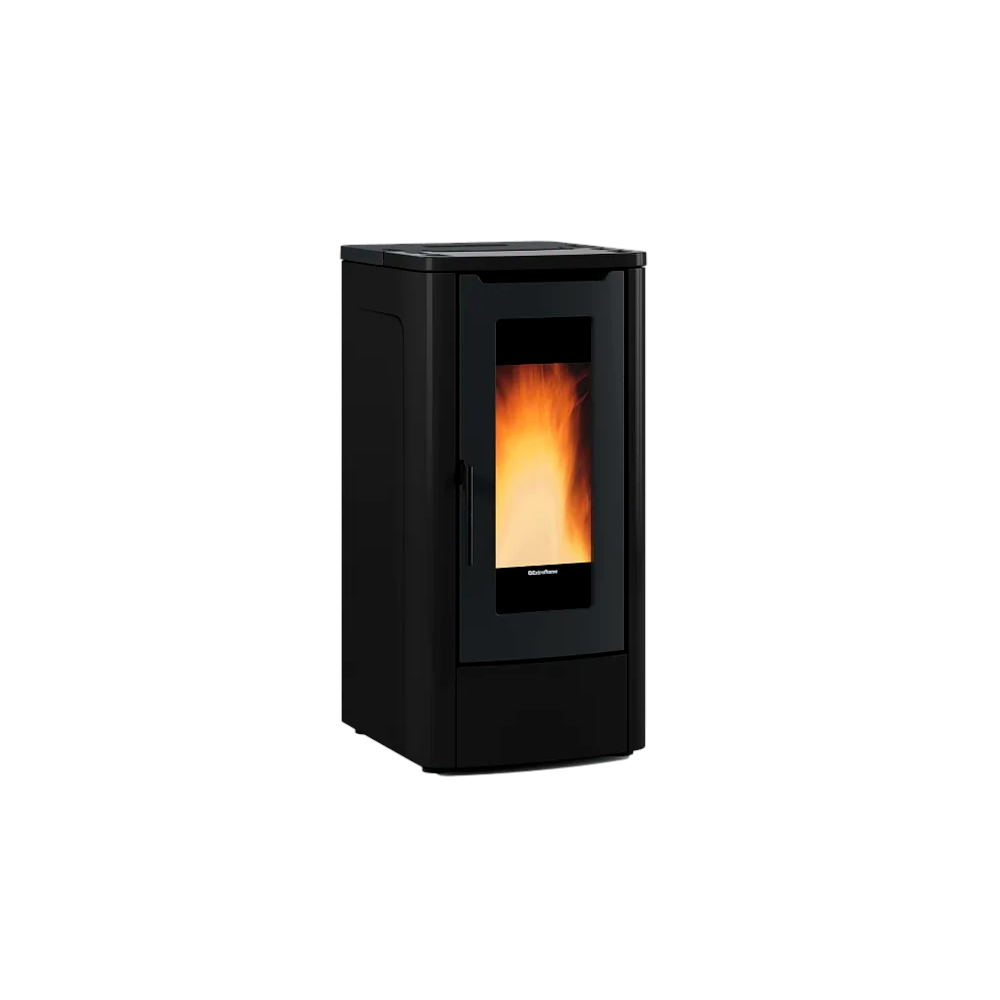 La finitura nera conferisce alla stufa un aspetto sobrio e sofisticato, adattabile a diversi stili di arredo. Le linee eleganti e compatte si integrano perfettamente nell’ambiente domestico. Dotata di sistemi di controllo avanzati, la stufa canalizzata Teorema Plus 5.0 consente di gestire facilmente temperatura e  programmazione, ottimizzando i consumi e garantendo un funzionamento efficiente e sicuro. Il pannello di controllo intuitivo, con display digitale ad alta leggibilità, permette di monitorare e regolare tutte le funzioni della stufa, mostrando in tempo reale temperatura, modalità operative.
