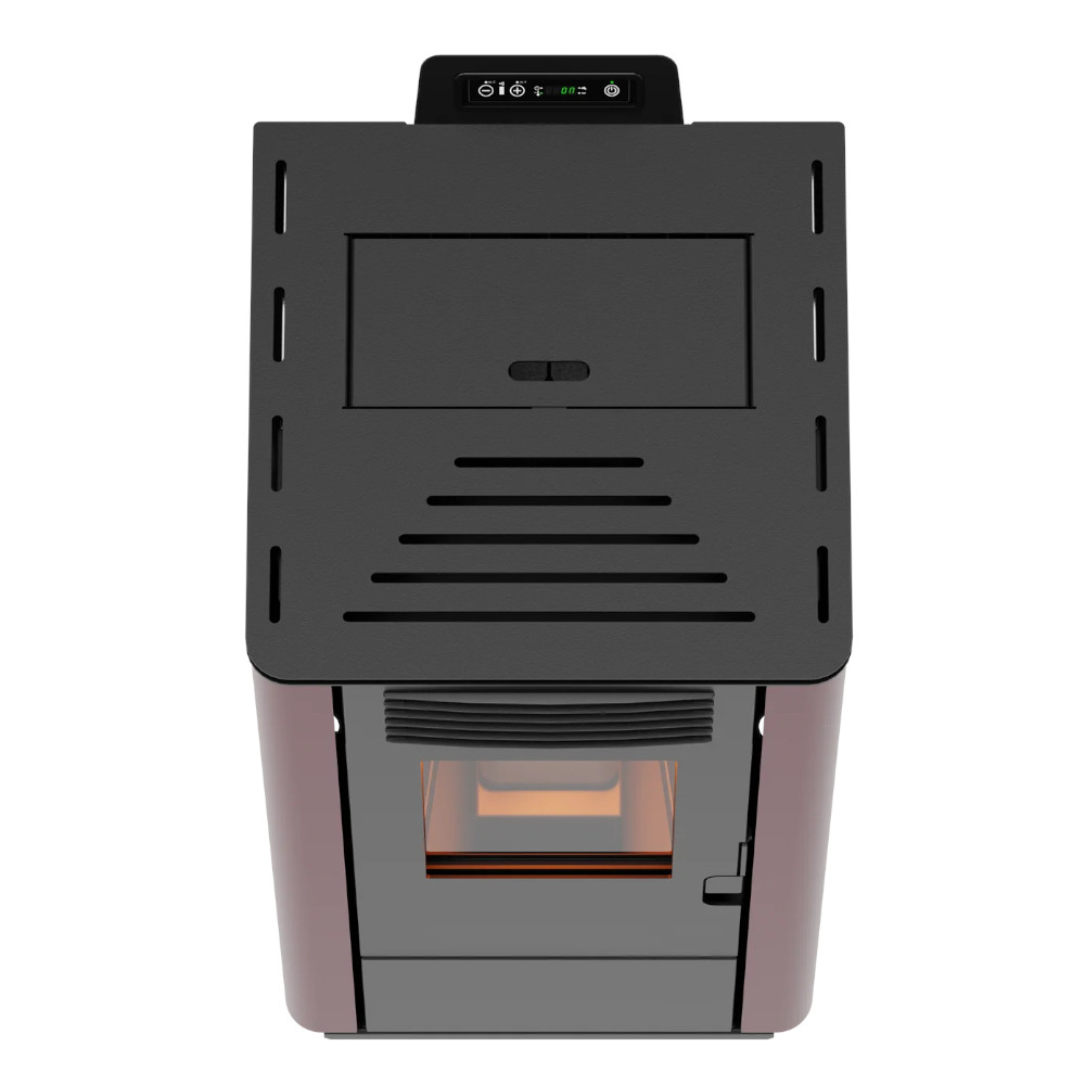 La semplicità di caricamento dal top, la compattezza e il design moderno ne fanno un elemento pratico e di grande impatto estetico. Inoltre, il telecomando incluso migliora l’esperienza utente, rendendo la gestione della stufa semplice e immediata.