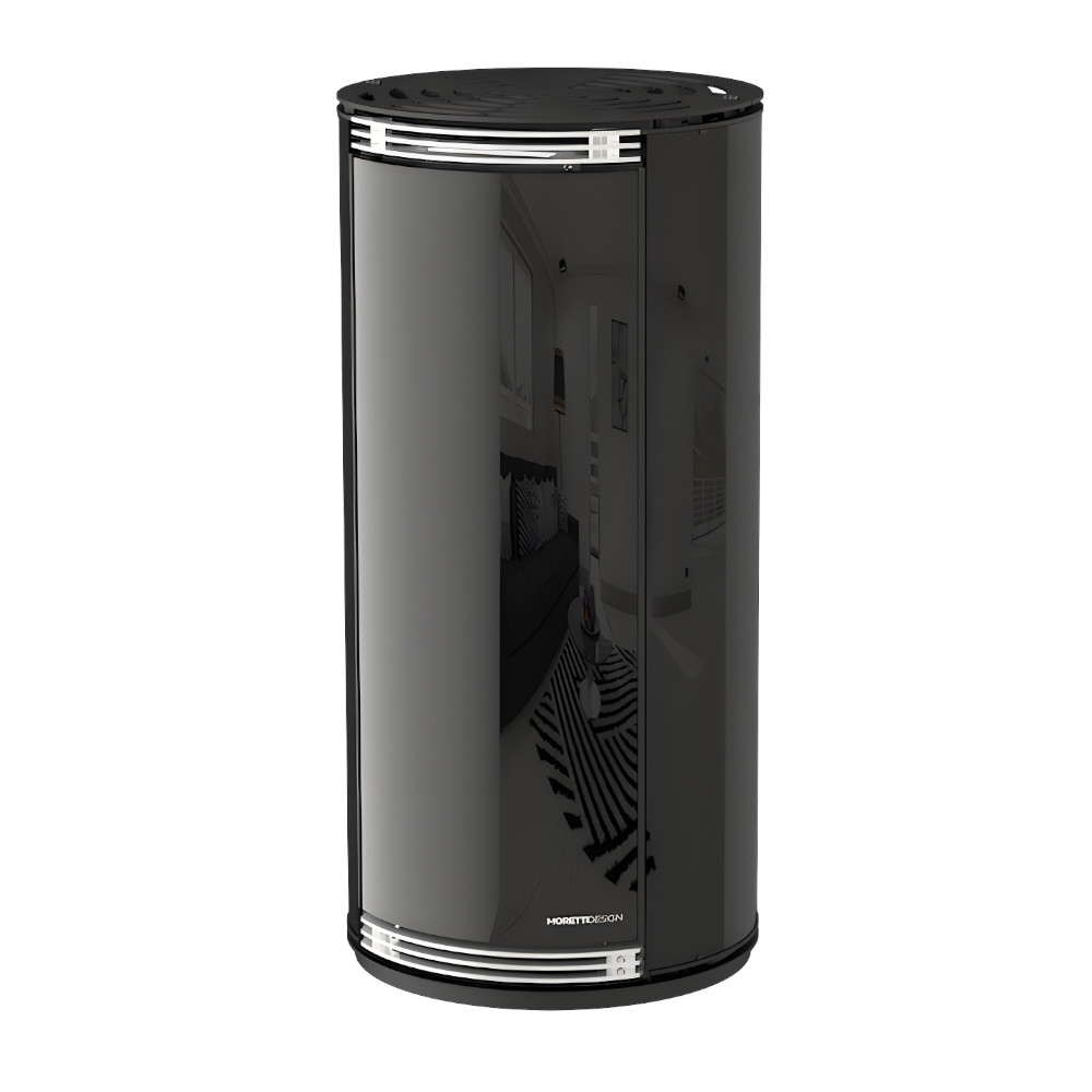La sua forma cilindrica e il doppio trittico inox insieme al TOP in metallo che direziona il flusso dell’aria calda, la rende elegante. Arricchita dal vetro frontale e laterale color nero, si integra facilmente in diversi stili di arredo. La fiamma visibile attraverso il vetro che si illumina durante il funzionamento, creando un’atmosfera accogliente. La presenza di un doppio vetro garantisce un migliore isolamento termico, maggiore sicurezza e protezione.