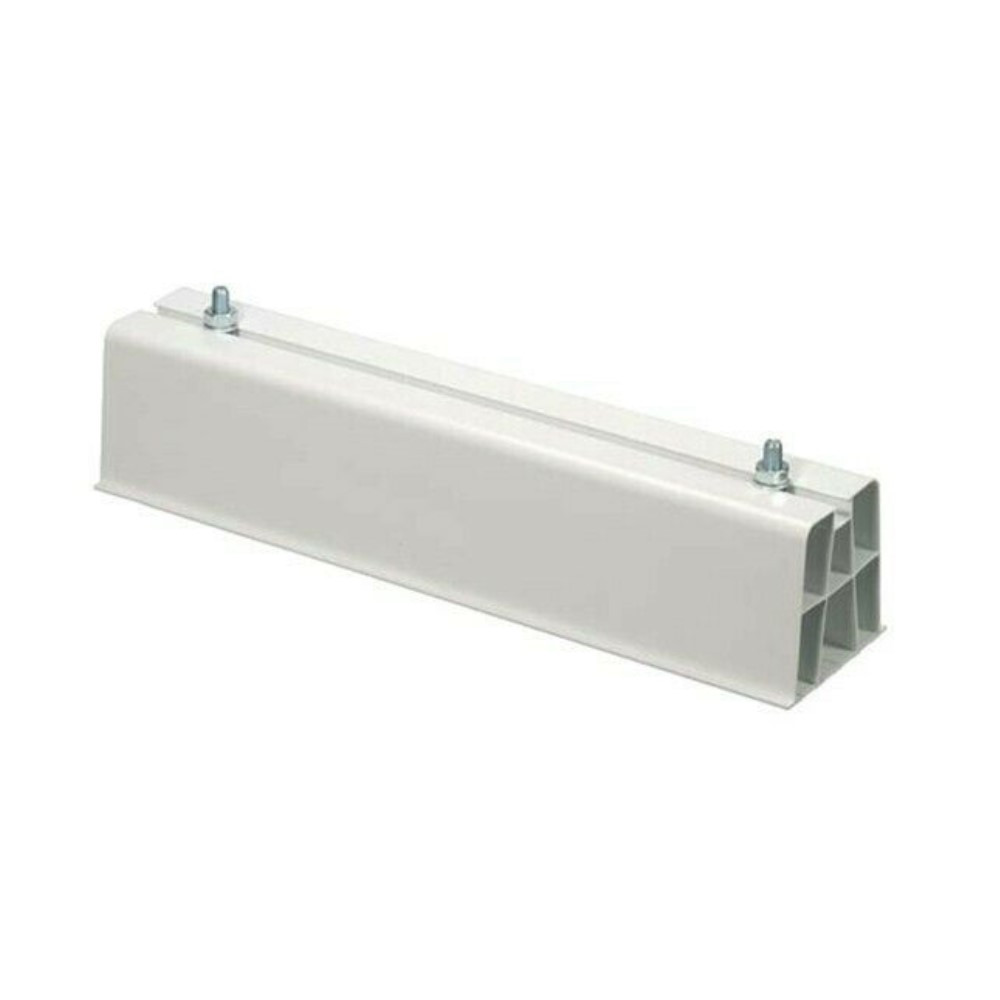 E’ realizzato in PVC rigido di colore bianco, un materiale durevole e resistente alla corrosione nel corso del tempo. La base è completa di dadi e bulloni per il fissaggio della macchina refrigerante. Inoltre, il supporto è provvisto di fasce adesive da utilizzare come ancoraggio o per l’adattamento al pavimento di un condizionatore. Il piede riesce a sostenere un peso pari a 140 Kg assicurando un’ottima stabilità dell’unità esterna. Le misure della barra di supporto a pavimento sono L 450 mm x B 90 mm x H 80 mm.