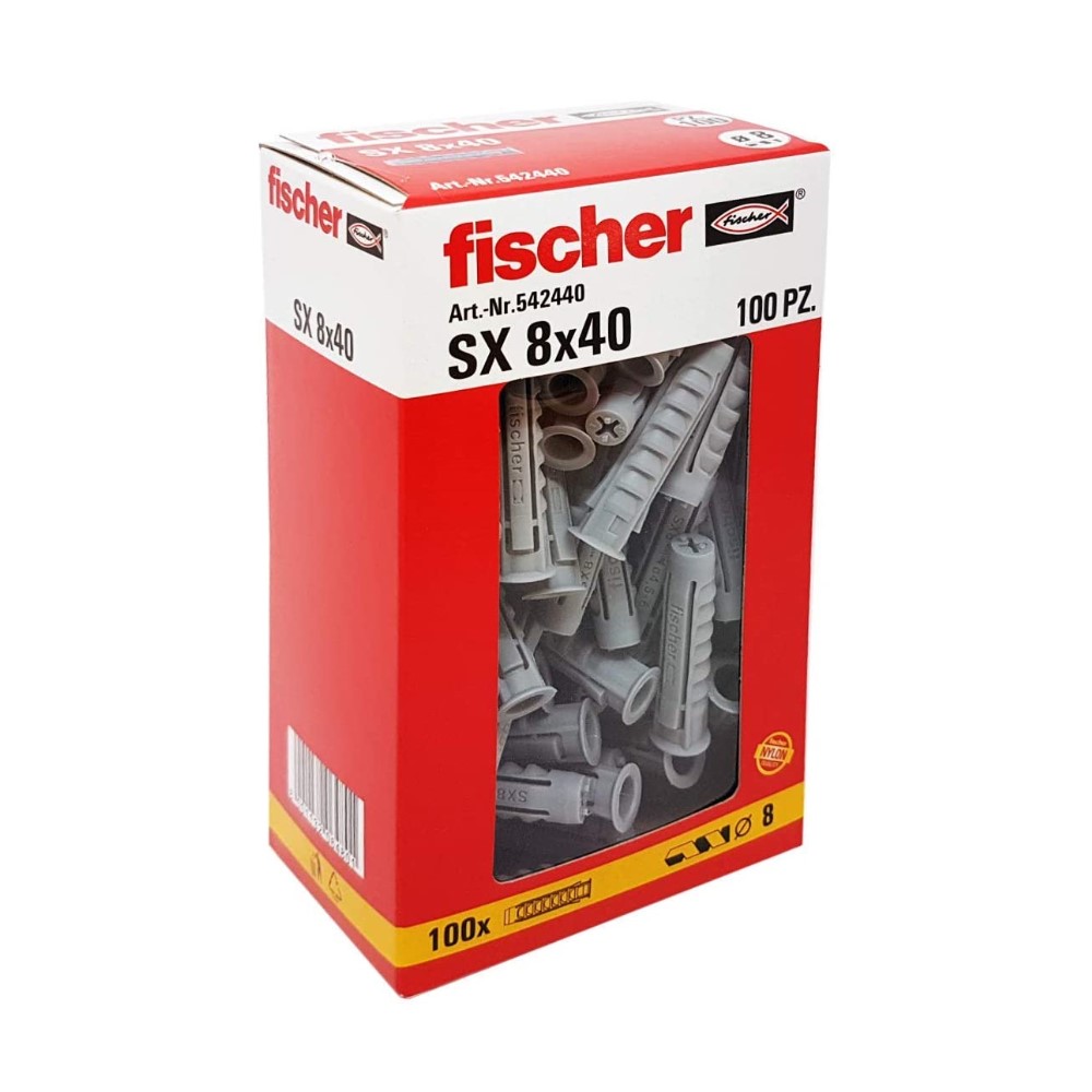 MATERIALI DI SUPPORTO: calcestruzzo, mattone pieno in laterizio, mattone pieno in silicato di calcio, blocco pieno in calcestruzzo alleggerito, mattone semipieno (perforato verticalmente) in laterizio, mattone semipieno (perforato verticalmente) in silicato di calcio, blocco cavo in calcestruzzo alleggerito, calcestruzzo aerato autoclavato (calcestruzzo cellulare), solai in calcestruzzo con alleggerimenti in laterizio o similari, pietra naturale con struttura densa e pannello pieno in gesso. SX è idoneo per installazione passante e non passante. Quando si avvita la vite, il fissaggio si espande in quattro direzioni, fissandosi saldamente al materiale di supporto. La lunghezza richiesta della vite è data da lunghezza del tassello + spessore oggetto da fissare. Idoneo per viti da legno e viti truciolari. Su supporti semipieni in laterizio forare solo a rotazione. Ø 8 mm. Lunghezza tassello 40 mm. Confezione da 100 pezzi.