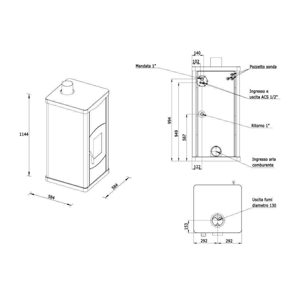 584x584x1144 mm