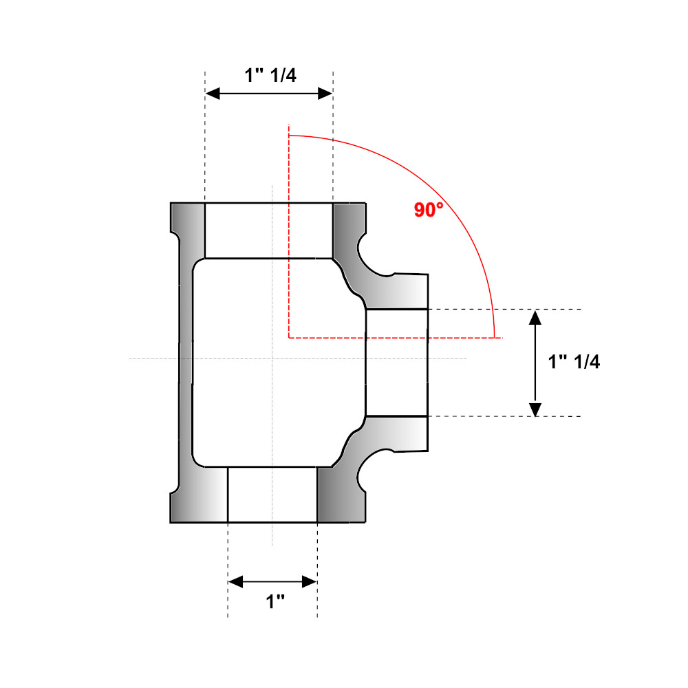 Tes ridotta Ghisa Zincata FFF 1″ 1/4-1″ 1/4-1″