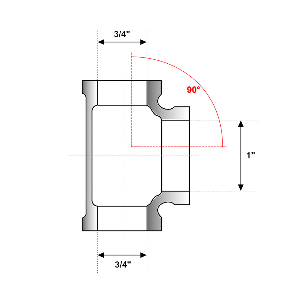 Tes ridotta Ghisa Zincata FFF 3/4″ -1″- 3/4″