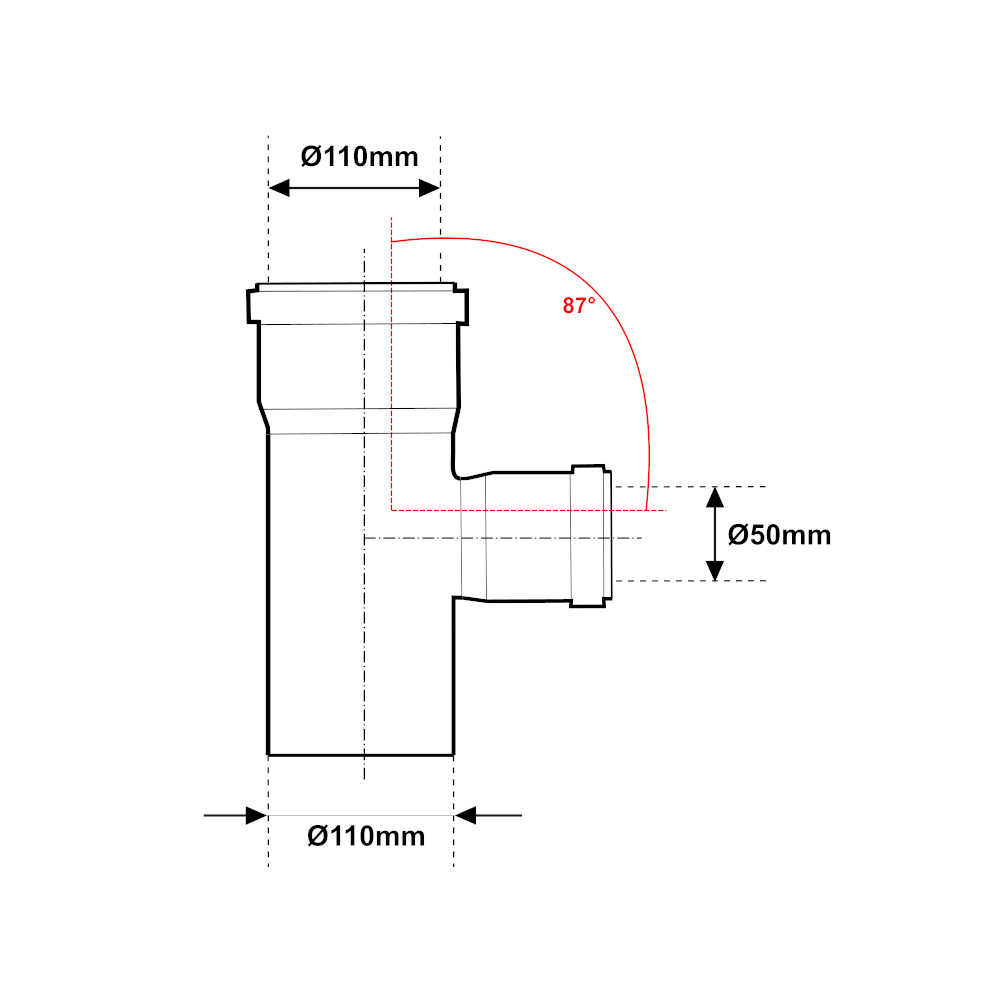 Il sistema in polipropilene grigio ad innesto è utilizzato per la realizzazione di impianti di scarico e trattamento delle acque reflue, impianti di drenaggio e di ventilazione. Il raccordo ad angolo è ideale per ottenere un’angolazione di 87°. La TES è dotata di un attacco maschio con diametro Ø 110mm, un attacco femmina con diametro Ø 110mm e un attacco femmina con diametro Ø50 mm. Il raccordo TES è adatto per collegare due tubi ed ottenere un unico tubo risultante, o per dividere il flusso d’acqua in due tubature diverse. La TES utilizza il sistema a bicchiere con guarnizione idraulica ad innesto. Quest’ultima garantisce una solida tenuta senza perdite. Inoltre assicura lo spazio necessario, per l’eventuali dilatazioni dell’impianto, dovute alle variazioni della temperatura.