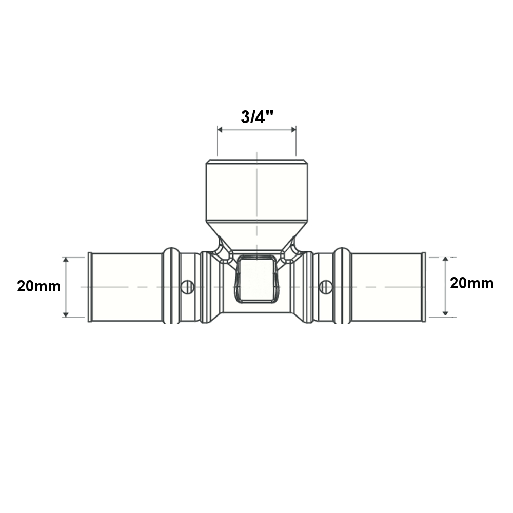 La Tes filettata multistrato a pressare acqua è utilizzata per la realizzazione di impianti idrosanitari, impianti di riscaldamento ad alta temperatura, impianti di riscaldamento e raffrescamento a pavimento. Il raccordo a T consente di collegare tre tubature nella costruzione di impianti idrici. La Tes presenta un attacco femmina filettato con diametro Ø3/4″ e due attacchi femmina con diametro Ø20mm.  La Tes sfrutta l’utilizzo di tubature multistrato con spessore di 2mm.