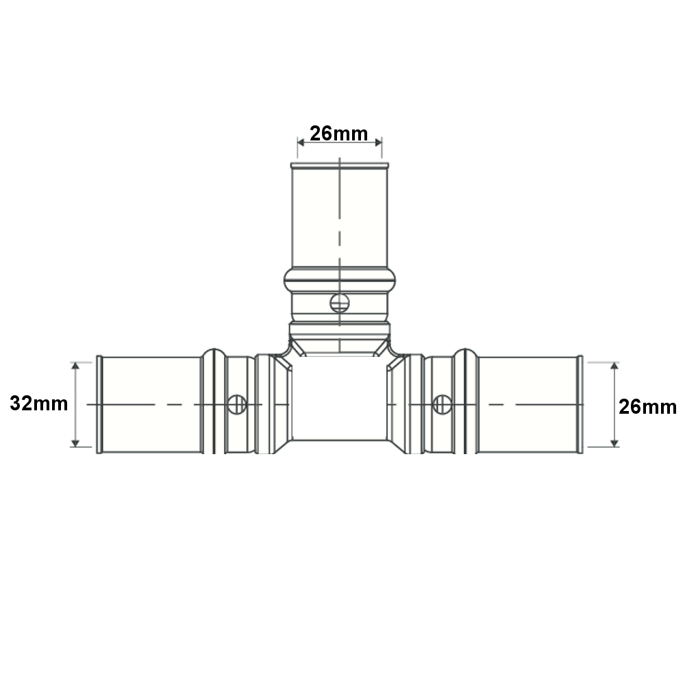 La Tes multistrato a pressare acqua è utilizzata per la realizzazione di impianti  idrosanitari, impianti di riscaldamento ad alta temperatura, impianti di riscaldamento e raffrescamento a pavimento. Il raccordo a T consente di collegare tre tubature nella costruzione di impianti idrici. La Tes ha due attacchi femmina con diametro Ø26mm e un attacco femmina con diametro Ø32mm. La Tes viene utilizzata con tubature multistrato con spessore di 3mm.
