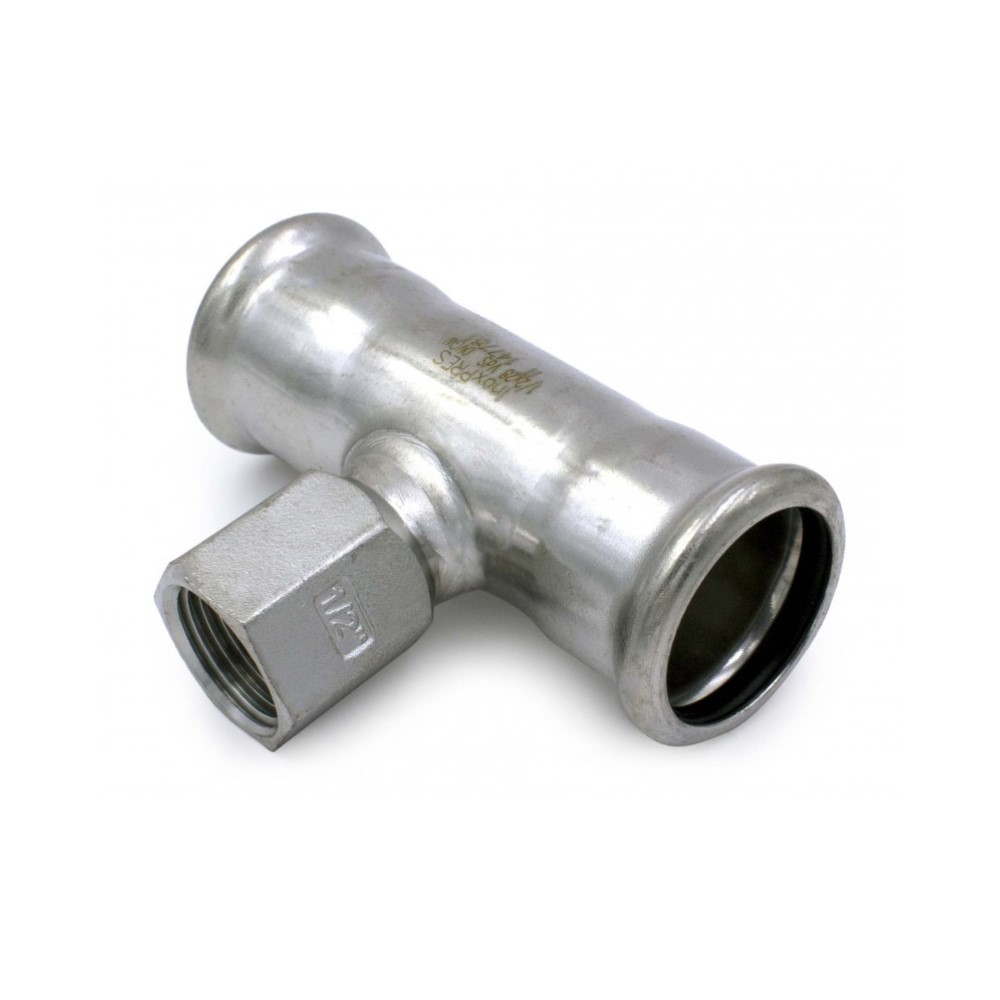 Raccordo a “T” con derivazione filetto F Ø 42 mm x Ø 1/2″ Steel. I raccordi sono realizzati in acciaio E195 non legato a cui è applicato galvanicamente uno strato di zinco (per aumentarne la protezione contro la corrosione esterna). L’acciaio al carbonio rappresenta la scelta migliore dove le proprietà dell’acciaio inox non sono necessarie e dove è fondamentale il fattore economico. L’impiego di STEELPRES di Raccorderie Metalliche è idoneo alla realizzazione dei circuiti chiusi idrotermosanitari civili e industriali quali: riscaldamento, raffreddamento, antincendio ed aria compressa. All’interno di ogni raccordo, è montato l’O-Ring in EPDM dal profilo brevettato. Questo O-Ring ha un range di utilizzo da -20/+120 °C e, con pressione massima di 16 bar, offre qualità e garanzia di sicurezza. Concretezza, affidabilità e certezza del risultato sono principi condivisi da Raccorderie Metalliche.