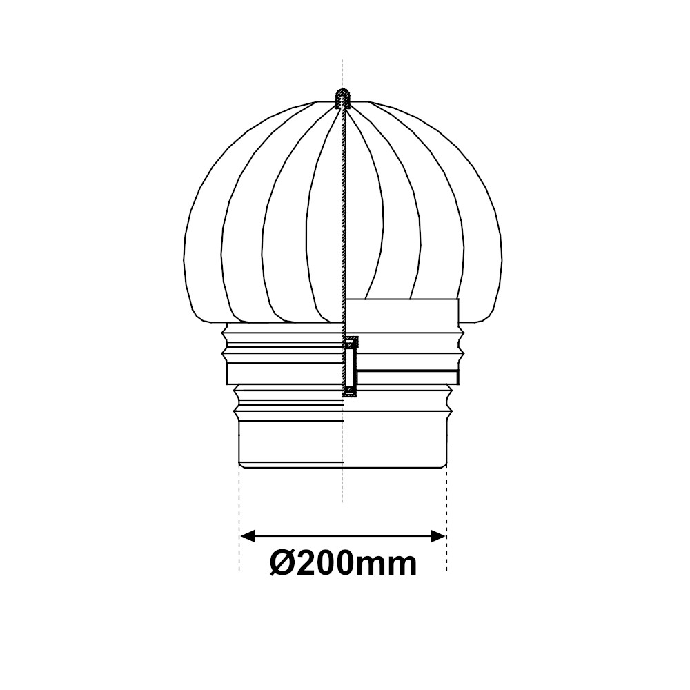 Cappello eolico in acciaio INOX Ø 200mm, facilita l’uscita dell’aria al di fuori della canna fumaria. Il tirafumo è la scelta ideale per la creazione di impianti di scarico di fumi derivanti da combustione di gas metano, gasolio o legna. Il terminale viene posto nella parte finale della canna fumaria e facilita l’espulsione dei fumi di scarico. La rotazione eolica crea difatti una depressione che semplifica l’uscita dei fumi. In aggiunta il fumaiolo ha un innesto con diametro di 200mm ed è realizzato in acciaio inossidabile a parete singola. L’acciaio è un materiale eccellente per la realizzazione di circuiti di scarico di fumi. Infatti questo materiale è in grado di garantire un’elevata resistenza ed un’alta durabilità nel tempo. La scelta di utilizzare canne fumarie e raccordi in acciaio inox consente di ottimizzare la combustione e ridurre notevolmente sia i consumi che le sostanze inquinanti. Il cappello in acciaio è perciò la scelta ideale per il vostro impianto di smaltimento fumi. Il cappello eolico è disponibile in vari diametri.