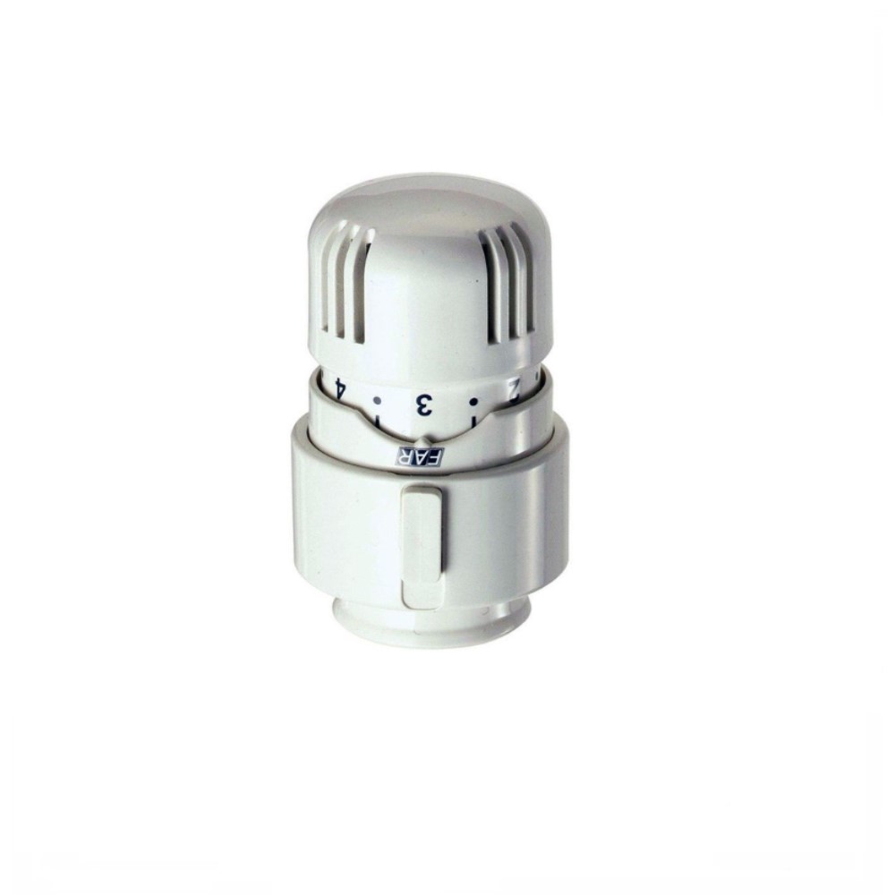 La Testa termostatica della Far è una valvola termostatica che permette di regola automaticamente la variazione di temperatura all’interno di un’ambiente. La testa testina o testata ha incorporato un sensore a liquido, che le consente di poter variare la temperatura. Girando a destra oppure a sinistra il comando termostatico, il quale fa aprire o chiudere una valvola del circuito sulla quale è installata, cosi facendo si ha la possibilità di posizionando il selettore di temperatura sul un valore desiderato compreso fra 0 a 5 o viceversa, cosi da poter ottenere la temperatura desiderata nell’ambiente( Il campo di regolazione della temperatura varia da 7°C a 28°C ). Il termostato e di facile installazione grazie al suo nuovo sistema di incastro della ghiera, La gamma FAR è sinonimo di garanzia Made in Italy dei suoi prodotti.