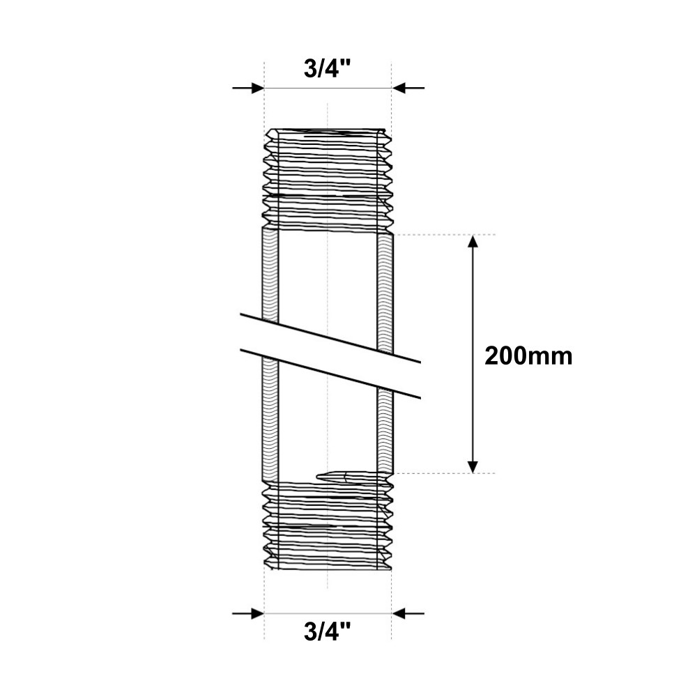 Il raccordo in ottone giallo pesante giallo è utilizzato per collegare due tubi in impianti di riscaldamento, raffrescamento, impianti di acqua sia calda che fredda, aria compressa e in ogni installazione idraulica, commerciale, industriale, domestica ed agricola. Inoltre il raccordo in ottone giallo pesante è idoneo per il trasporto di acqua potabile. Il tronchetto è utilizzato per effettuare un prolungamento di due raccordi in un impianto. Il tronchetto ha due attacchi maschio con filettatura 3/4″ e lunghezza 200mm. La filettatura del raccordo, più lunga e più liscia, permette al tubo di scorrere meglio ed è conforme alla norma UNI EN ISO 228-1:2003.
