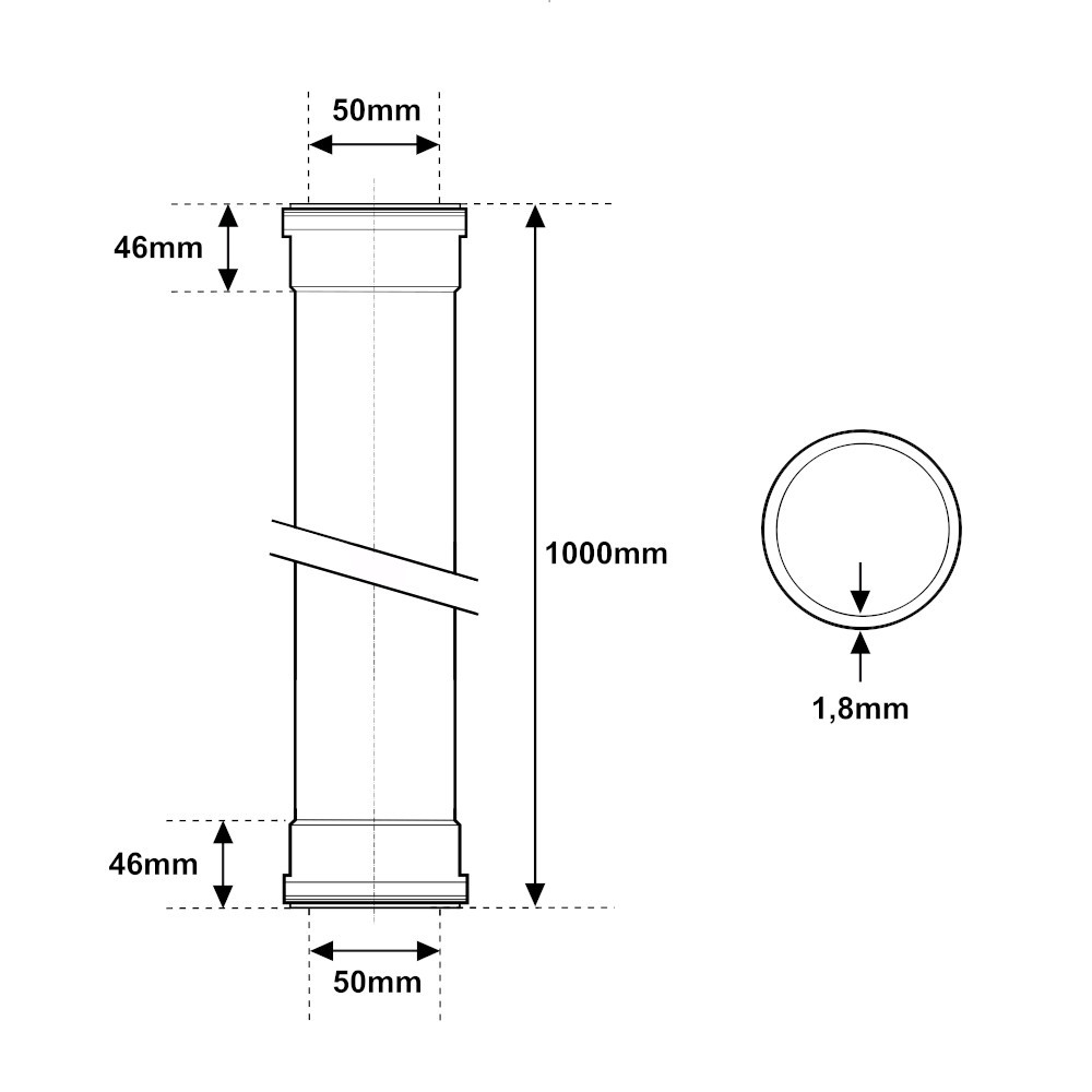 Tubo PP Ultra Silent 2 bicchieri Ø50mm 1000mm