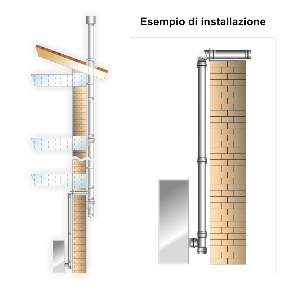 Queste tubazioni sfruttano il sistema ad innesto a bicchiere con guarnizione idraulica, garantendo un’alta semplicità di impiego ed un’ottima tenuta. In aggiunta, il tubo è realizzato in acciaio inox 316L, un tipo di materiale eccellente per lo scarico di fumi. Infatti, l’acciaio inossidabile è in grado di assicurare un’elevata resistenza ed un’alta durata nel tempo. Inoltre, la conduttura è verniciata di colore nero opaco. Il colore è facilmente abbinabile con tutti i sistemi di riscaldamento, soprattutto con le stufe a pellet. Per di più la verniciatura della tubatura è garantita fino a 400 °C, assicurando la durata del tubo e scongiurando eventuali deterioramenti.