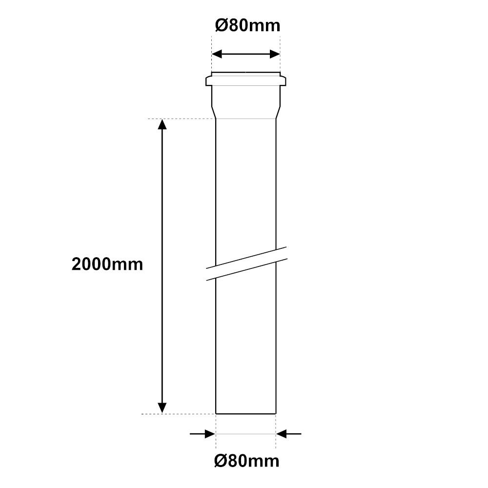 Il tubo da 2000mm in acciaio inox nero opaco Ø 80mm è ideale per la realizzazione di scarichi di stufe a pellet. Il canale da fumo è lungo 2000mm. E’ munito di un attacco femmina con diametro di 80mm e di un attacco maschio con diametro di 80mm.