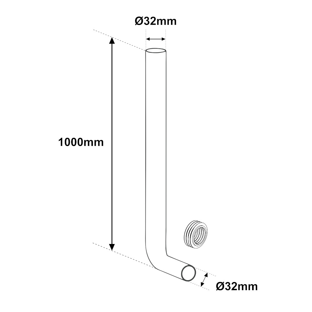 Tubo di cacciata per cassetta di scarico WC, consente di collegare la cassetta al vaso di scarico. Il tubo di scarico è la scelta ideale per poter collegare agevolmente il WC alla cassetta, completando difatti il sistema di scarico. Si presenta con una colorazione bianca ed è lungo 1000mm. La parte del tubo che si collega alla cassetta ha un diametro di 50mm, mentre la parte che si collega al sanitario ha un diametro di 32mm. È la soluzione perfetta per sostituire un tubo di cacciata ormai non idoneo o più semplicemente per ultimare il sistema di scarico.