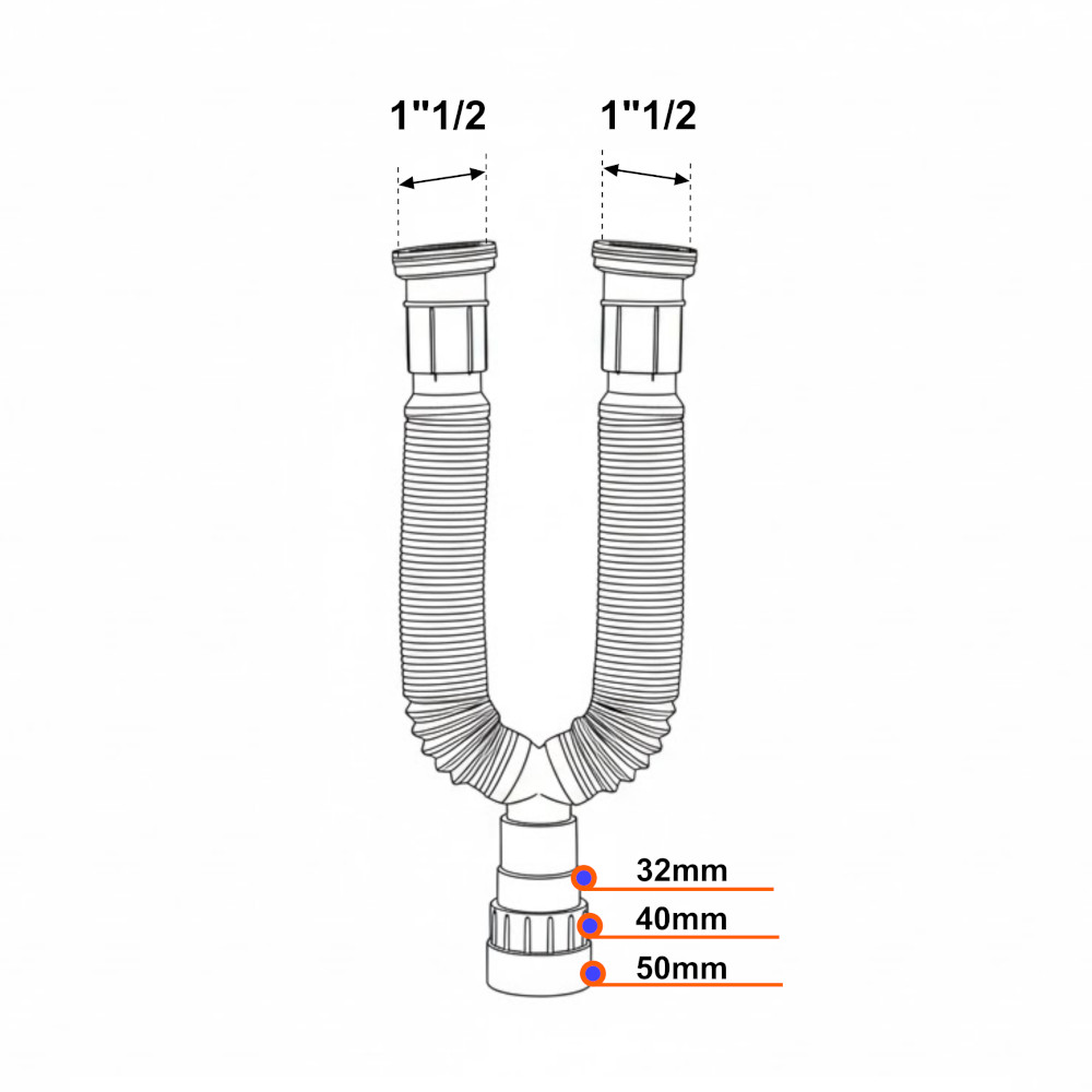 Il tubo estensibile a 2 vie 1”1/2 x 32-40-50 è una soluzione pratica e affidabile per lo scarico dei lavelli da cucina con doppio scarico. Grazie alla sua flessibilità, alla compatibilità con diversi diametri e al sifone integrato, rappresenta una scelta funzionale e sicura per un’installazione efficiente e duratura.