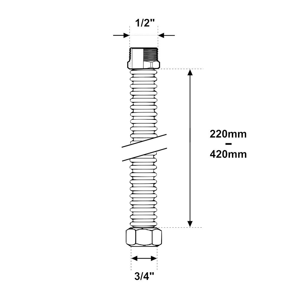 Tubo estensibile inox gas 220-420mm MF 1/2″-3/4″ Cona