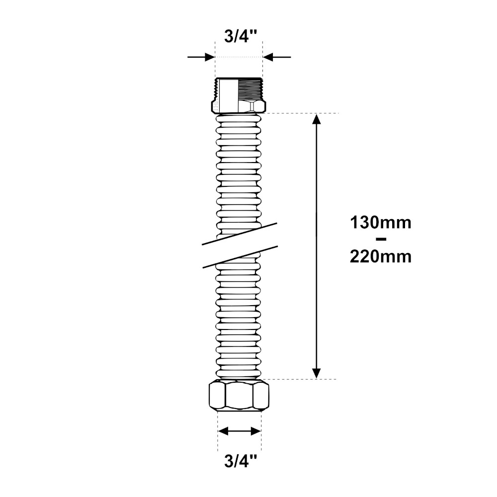 Tubo estensibile inox acqua 130-220mm MF 3/4″-3/4″ Cona