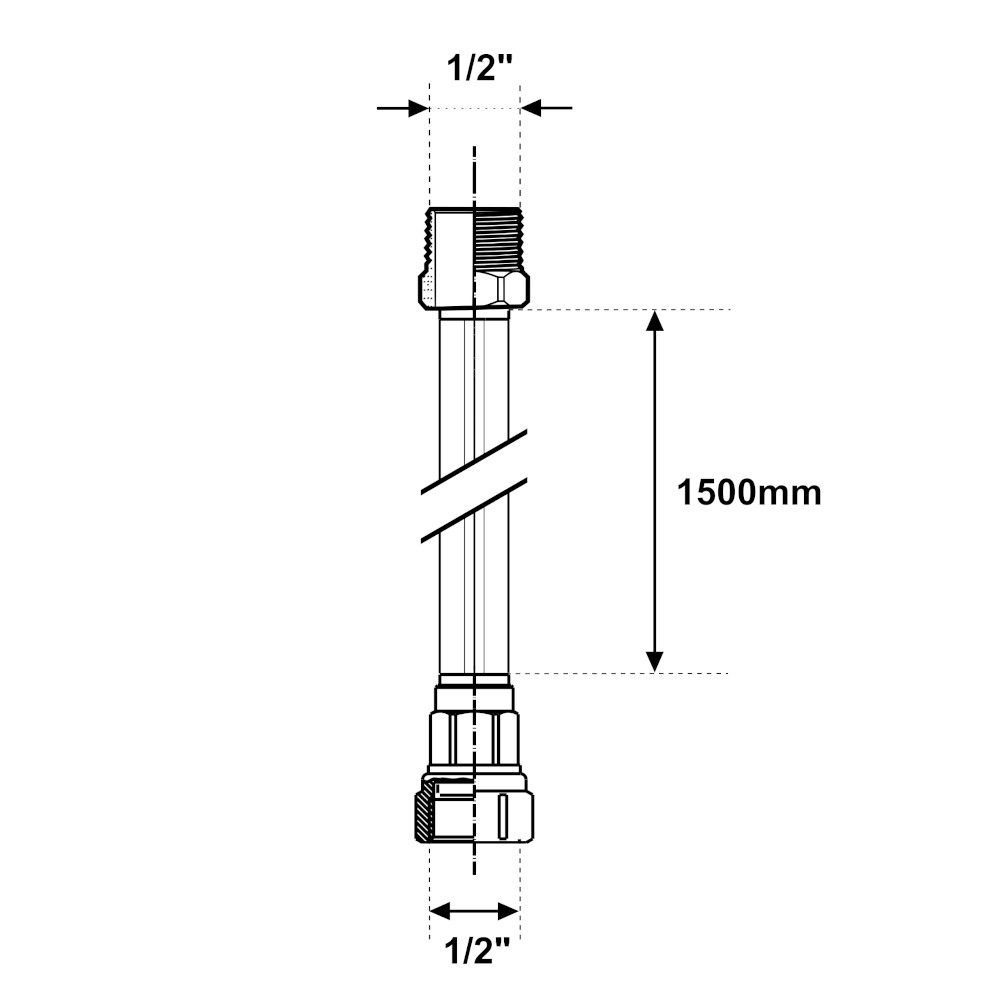 Il tubo è dotato di attacco maschio–femmina da 1/2″ e presenta una lunghezza di 1500mm, risultando adatto alla maggior parte delle installazioni in cucina. Il prodotto è conforme alla norma europea EN 14800, riferimento per i tubi flessibili in acciaio destinati all’uso gas.
