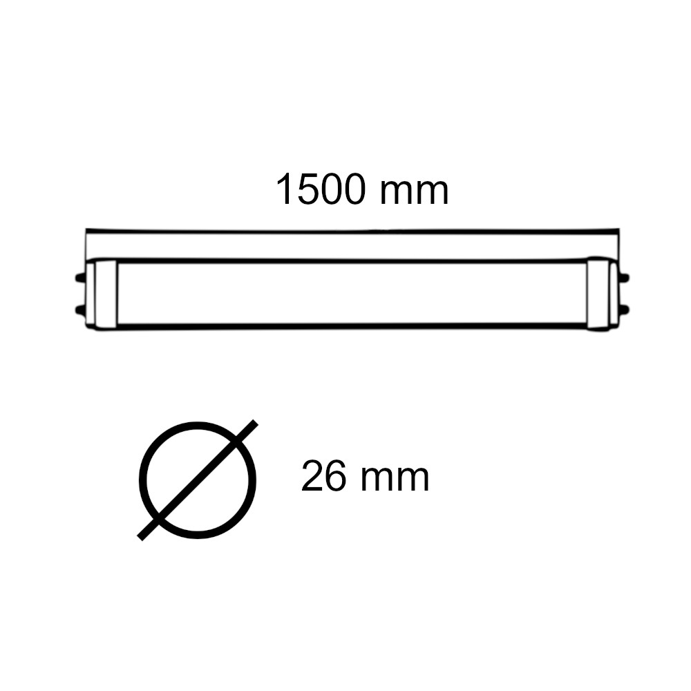 Il tubo a LED T8 illumina i vostri ambienti con la sua luce bianco freddo. Il tubo LED è la scelta adatta per sostituire i vecchi tubi neon a fluorescenza, garantendo un grande risparmio in bolletta, difatti consuma solo 24 W. Rispetto alle lampade a neon consente di avere una luce uniforme ed omogenea, illuminando alla perfezione i vostri ambienti. In secondo luogo, uno dei vantaggi principali sarà la scomparsa dello sfarfallio dovuto alla tecnologia a neon. La lampada si presenta con una forma a tubo di lunghezza pari a 1500 mm, ed ha una piacevole finitura opaca, ideale per evitare fastidiosi riflessi. In aggiunta è fabbricata in policarbonato ed è dotata di attacco standard T8, quindi permette di sostituire i vostri neon senza effettuare modifiche all’ impianto. La lampada a tubo è una scelta eccellente per essere montata in garage, magazzini, negozi e altro. Grazie agli elevati lumen prodotti illumina alla perfezione i vostri ambienti. La luce prodotta dal tubo è di tipo bianca fredda, con temperatura colore di 5500 – 6000 K, producendo una luce simile a quella del sole. Inoltre produce una luce con un’ intensità di ben 2300 lm ed un’ angolazione di 320°. Per di più sfruttando la tecnologia a LED, permette di raggiungere fino a 30000 ore di funzionamento. I dati tecnici del tubo LED possono essere soggetti a leggere variazioni. Starter LED non incluso.